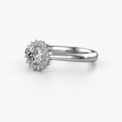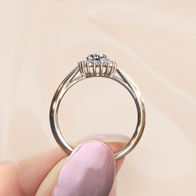 Der oben gezeigte Ring, mit dem Namen Tilly RND 1, nennen wir einen Cluster Verlobungsring. Der Cluster Ring trägt einem zentralen Edelstein, umgeben von kleineren Steinen. Diese Version in 14 Karat Weißgold hat einen rund Diamant von rund als Mittelstein, umschlossen von kleineren Diamanten. Was diesen klassische Weißgold Cluster Ring besonders macht, sind die kleinen Edelsteine rund um den zentralen Diamant, die wie eine schöne Blume geformt sind. Der umgebende Steinkranz umrahmt den Mittelstein so, dass er größer erscheint. Diese Art von Verlobungsring wird auch Blumen- oder Rosettenring genannt. Es ist sehr wichtig, dass die kleineren Diamanten identisch positioniert sind, so dass es kein Spiel im Licht, sondern eine perfekte Einheit ergibt. Unsere erfahrenen Juweliere erledigen diese Arbeit. Jeder einzelne Stein wird sorgfältig von Hand gesetzt. Während der Herstellung wird der Lichteinfall ständig überwacht, um sicherzustellen, dass der spezielle Cluster-Effekt noch sichtbar ist. Am Ende bekommen Sie den perfekten Verlobungsring mit einem strahlenden Diamant Edelstein Herzstück. Sie können sich die Wirkung eines solchen Ringes vorstellen, wenn Sie ihn an ihrem besonderen Tag für die Liebe Ihres Lebens zum Leuchten bringen. Jedes Schmuckstück lässt Ihren Finger erstrahlen. Ihr Ring ist mit Liebe von unseren Goldschmieden handgefertigt.Durch die Kombination modernster Technik mit uralter Handwerkskunst können wir alle Verlobungsringe in unserem eigenen Studio anfertigen. Jedes Schmuckstück wird auf Anfrage gefertigt. Das ist vorteilhaft, weil wir Ihnen dadurch einen Preis anbieten können, den Sie nirgendwo anders finden.Unser Team fügt unserer Online-Kollektion täglich neue Designs hinzu. Unsere Designer und Goldschmiede arbeiten zusammen, um das beste Design zu kreieren. Wir bemühen uns, eine vielfältige Kollektion von Schmuckstücken anzubieten. Vielleicht haben Sie ein bestimmtes Design im Sinn. Eines, dass Sie irgendwo gesehen haben. Gerne geben wir Ihnen eine kostenlose Beratung. Wir machen Ihnen ein Angebot, basierend auf einem fairen Preis/Leistungsverhältnis, das Sie verblüffen wird.Um es einfacher zu machen, bieten wir eine kostenlose 30-tägige Rücksendung.