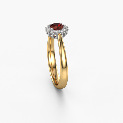 Der oben gezeigte Ring, mit dem Namen Tilly RND 1, nennen wir einen Cluster Verlobungsring. Der Cluster Ring trägt einem zentralen Edelstein, umgeben von kleineren Steinen. Diese Version in 14 Karat Gold hat einen rund Granat von rund als Mittelstein, umschlossen von kleineren Diamanten. Was diesen klassische Gold Cluster Ring besonders macht, sind die kleinen Edelsteine rund um den zentralen Granat, die wie eine schöne Blume geformt sind. Der umgebende Steinkranz umrahmt den Mittelstein so, dass er größer erscheint. Diese Art von Verlobungsring wird auch Blumen- oder Rosettenring genannt. Es ist sehr wichtig, dass die kleineren Granat identisch positioniert sind, so dass es kein Spiel im Licht, sondern eine perfekte Einheit ergibt. Unsere erfahrenen Juweliere erledigen diese Arbeit. Jeder einzelne Stein wird sorgfältig von Hand gesetzt. Während der Herstellung wird der Lichteinfall ständig überwacht, um sicherzustellen, dass der spezielle Cluster-Effekt noch sichtbar ist. Am Ende bekommen Sie den perfekten Verlobungsring mit einem strahlenden Granat Edelstein Herzstück. Sie können sich die Wirkung eines solchen Ringes vorstellen, wenn Sie ihn an ihrem besonderen Tag für die Liebe Ihres Lebens zum Leuchten bringen. Jedes Schmuckstück lässt Ihren Finger erstrahlen. Ihr Ring ist mit Liebe von unseren Goldschmieden handgefertigt.Durch die Kombination modernster Technik mit uralter Handwerkskunst können wir alle Verlobungsringe in unserem eigenen Studio anfertigen. Jedes Schmuckstück wird auf Anfrage gefertigt. Das ist vorteilhaft, weil wir Ihnen dadurch einen Preis anbieten können, den Sie nirgendwo anders finden.Unser Team fügt unserer Online-Kollektion täglich neue Designs hinzu. Unsere Designer und Goldschmiede arbeiten zusammen, um das beste Design zu kreieren. Wir bemühen uns, eine vielfältige Kollektion von Schmuckstücken anzubieten. Vielleicht haben Sie ein bestimmtes Design im Sinn. Eines, dass Sie irgendwo gesehen haben. Gerne geben wir Ihnen eine kostenlose Beratung. Wir machen Ihnen ein Angebot, basierend auf einem fairen Preis/Leistungsverhältnis, das Sie verblüffen wird.Um es einfacher zu machen, bieten wir eine kostenlose 30-tägige Rücksendung.
