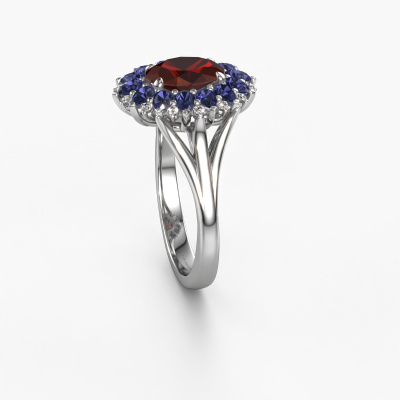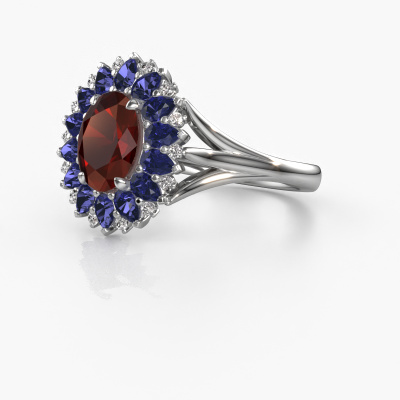Der oben gezeigte Ring, mit dem Namen Lidia, nennen wir einen Cluster Verlobungsring. Der Cluster Ring trägt einem zentralen Edelstein, umgeben von kleineren Steinen. Diese Version in Platin hat einen oval Granat von oval als Mittelstein, umschlossen von kleineren Saphir. Was diesen Vintage Platin Cluster Ring besonders macht, sind die kleinen Edelsteine rund um den zentralen Granat, die wie eine schöne Blume geformt sind. Der umgebende Steinkranz umrahmt den Mittelstein so, dass er größer erscheint. Diese Art von Verlobungsring wird auch Blumen- oder Rosettenring genannt. Es ist sehr wichtig, dass die kleineren Granat identisch positioniert sind, so dass es kein Spiel im Licht, sondern eine perfekte Einheit ergibt. Unsere erfahrenen Juweliere erledigen diese Arbeit. Jeder einzelne Stein wird sorgfältig von Hand gesetzt. Während der Herstellung wird der Lichteinfall ständig überwacht, um sicherzustellen, dass der spezielle Cluster-Effekt noch sichtbar ist. Am Ende bekommen Sie den perfekten Verlobungsring mit einem strahlenden Granat Edelstein Herzstück. Sie können sich die Wirkung eines solchen Ringes vorstellen, wenn Sie ihn an ihrem besonderen Tag für die Liebe Ihres Lebens zum Leuchten bringen. Jedes Schmuckstück wird hergestellt mit Leidenschaft und Liebe, von einem unserer Meister-Goldschmiede.Durch die Kombination modernster Technik mit uralter Handwerkskunst können wir alle Verlobungsringe in unserem eigenen Studio anfertigen. Jedes Schmuckstück wird auf Anfrage gefertigt. Das ist vorteilhaft, weil wir Ihnen dadurch einen Preis anbieten können, den Sie nirgendwo anders finden.Haben Sie irgendwo einen bestimmten Verlobungsring gefunden, den Sie Ihrem Liebsten schenken möchten? Sie können uns gerne sagen, was Sie wollen und wir werden Ihr Design in einen Einzigartigen Vintage Verlobungsring verwandeln. Sie können die Entwicklungen Ihres Ringdesigns verfolgen, da wir 3D-Zeichnungen verwenden. Das gibt Ihnen eine realistische Vorschau, wie Ihr Design aussehen wird. Sie können auch einen Dummy vorbestellen. Ein Dummy ist ein Kunststoffring, der nach Ihrem Ringdesign gestaltet werden kann. Sie können ihn anprobieren und prüfen, ob seine Breite und Größe für Sie geeignet sind. Wir senden Ihnen gerne ein unverbindliches Angebot zu einem fairen Preis/Leistungsverhältnis. Sie werden in Anbetracht der Qualität des Rings und der Edelsteine überrascht sein.Um es einfacher zu machen, bieten wir eine kostenlose 30-tägige Rücksendung.