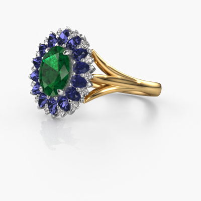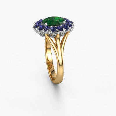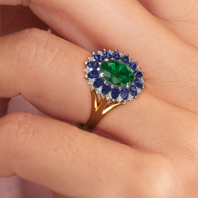 Der oben gezeigte Ring, mit dem Namen Lidia, nennen wir einen Cluster Verlobungsring. Der Cluster Ring trägt einem zentralen Edelstein, umgeben von kleineren Steinen. Diese Version in 14 Karat Gold hat einen oval Smaragd von oval als Mittelstein, umschlossen von kleineren Saphir. Was diesen Vintage Gold Cluster Ring besonders macht, sind die kleinen Edelsteine rund um den zentralen Smaragd, die wie eine schöne Blume geformt sind. Der umgebende Steinkranz umrahmt den Mittelstein so, dass er größer erscheint. Diese Art von Verlobungsring wird auch Blumen- oder Rosettenring genannt. Es ist sehr wichtig, dass die kleineren Smaragd identisch positioniert sind, so dass es kein Spiel im Licht, sondern eine perfekte Einheit ergibt. Unsere erfahrenen Juweliere erledigen diese Arbeit. Jeder einzelne Stein wird sorgfältig von Hand gesetzt. Während der Herstellung wird der Lichteinfall ständig überwacht, um sicherzustellen, dass der spezielle Cluster-Effekt noch sichtbar ist. Am Ende bekommen Sie den perfekten Verlobungsring mit einem strahlenden Smaragd Edelstein Herzstück. Sie können sich die Wirkung eines solchen Ringes vorstellen, wenn Sie ihn an ihrem besonderen Tag für die Liebe Ihres Lebens zum Leuchten bringen. Jedes Schmuckstück wird hergestellt mit Leidenschaft und Liebe, von einem unserer Meister-Goldschmiede.Durch die Kombination modernster Technik mit uralter Handwerkskunst können wir alle Verlobungsringe in unserem eigenen Studio anfertigen. Jedes Schmuckstück wird auf Anfrage gefertigt. Das ist vorteilhaft, weil wir Ihnen dadurch einen Preis anbieten können, den Sie nirgendwo anders finden.Haben Sie irgendwo einen bestimmten Verlobungsring gefunden, den Sie Ihrem Liebsten schenken möchten? Sie können uns gerne sagen, was Sie wollen und wir werden Ihr Design in einen Einzigartigen Vintage Verlobungsring verwandeln. Sie können die Entwicklungen Ihres Ringdesigns verfolgen, da wir 3D-Zeichnungen verwenden. Das gibt Ihnen eine realistische Vorschau, wie Ihr Design aussehen wird. Sie können auch einen Dummy vorbestellen. Ein Dummy ist ein Kunststoffring, der nach Ihrem Ringdesign gestaltet werden kann. Sie können ihn anprobieren und prüfen, ob seine Breite und Größe für Sie geeignet sind. Wir senden Ihnen gerne ein unverbindliches Angebot zu einem fairen Preis/Leistungsverhältnis. Sie werden in Anbetracht der Qualität des Rings und der Edelsteine überrascht sein.Um es einfacher zu machen, bieten wir eine kostenlose 30-tägige Rücksendung.