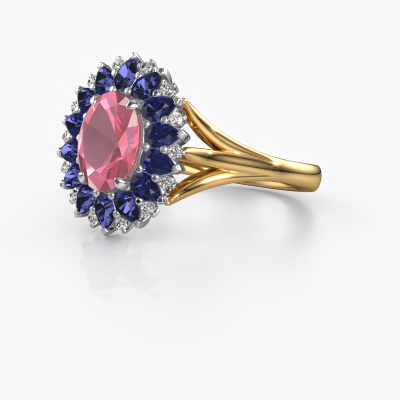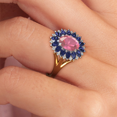 Der oben gezeigte Ring, mit dem Namen Lidia, nennen wir einen Cluster Verlobungsring. Der Cluster Ring trägt einem zentralen Edelstein, umgeben von kleineren Steinen. Diese Version in 14 Karat Gold hat einen oval Turmalin rosa von oval als Mittelstein, umschlossen von kleineren Saphir. Was diesen Vintage Gold Cluster Ring besonders macht, sind die kleinen Edelsteine rund um den zentralen Turmalin rosa, die wie eine schöne Blume geformt sind. Der umgebende Steinkranz umrahmt den Mittelstein so, dass er größer erscheint. Diese Art von Verlobungsring wird auch Blumen- oder Rosettenring genannt. Es ist sehr wichtig, dass die kleineren Turmalin rosa identisch positioniert sind, so dass es kein Spiel im Licht, sondern eine perfekte Einheit ergibt. Unsere erfahrenen Juweliere erledigen diese Arbeit. Jeder einzelne Stein wird sorgfältig von Hand gesetzt. Während der Herstellung wird der Lichteinfall ständig überwacht, um sicherzustellen, dass der spezielle Cluster-Effekt noch sichtbar ist. Am Ende bekommen Sie den perfekten Verlobungsring mit einem strahlenden Turmalin rosa Edelstein Herzstück. Sie können sich die Wirkung eines solchen Ringes vorstellen, wenn Sie ihn an ihrem besonderen Tag für die Liebe Ihres Lebens zum Leuchten bringen. Jedes Schmuckstück wird hergestellt mit Leidenschaft und Liebe, von einem unserer Meister-Goldschmiede.Durch die Kombination modernster Technik mit uralter Handwerkskunst können wir alle Verlobungsringe in unserem eigenen Studio anfertigen. Jedes Schmuckstück wird auf Anfrage gefertigt. Das ist vorteilhaft, weil wir Ihnen dadurch einen Preis anbieten können, den Sie nirgendwo anders finden.Haben Sie irgendwo einen bestimmten Verlobungsring gefunden, den Sie Ihrem Liebsten schenken möchten? Sie können uns gerne sagen, was Sie wollen und wir werden Ihr Design in einen Einzigartigen Vintage Verlobungsring verwandeln. Sie können die Entwicklungen Ihres Ringdesigns verfolgen, da wir 3D-Zeichnungen verwenden. Das gibt Ihnen eine realistische Vorschau, wie Ihr Design aussehen wird. Sie können auch einen Dummy vorbestellen. Ein Dummy ist ein Kunststoffring, der nach Ihrem Ringdesign gestaltet werden kann. Sie können ihn anprobieren und prüfen, ob seine Breite und Größe für Sie geeignet sind. Wir senden Ihnen gerne ein unverbindliches Angebot zu einem fairen Preis/Leistungsverhältnis. Sie werden in Anbetracht der Qualität des Rings und der Edelsteine überrascht sein.Um es einfacher zu machen, bieten wir eine kostenlose 30-tägige Rücksendung.