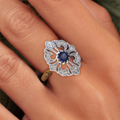 Dieser graziöse Verlobungsring aus 14 Karat Gold heißt Naida und hat 5 mm Saphir. Ist Ihre Freundin von Vintage begeistert? Dann wird dieser Gold Verlobungsring sicherlich perfekt zu ihrem Stil passen. Ein trendiger Ring mit einem Hauch von klassischem Schmuck. Ein wirklich atemberaubendes, romantisches Design! Vor allem, wenn Sie den Ring nach ihren Wünschen anpassen. Dieser Vintage Cluster Verlobungsring ist mit atemberaubenden Saphir besetzt. Wie Sie sehen können, sind Sie der Boss bei der Auswahl des Edelsteins, der am besten zu Ihrer Freundin passt. Jeder Edelstein wird sorgfältig von unseren Händlern ausgewählt, die auf der ganzen Welt verteilt sind. Nichts als die besten Edelsteine für unseren erfahrenen Juwelier! Schließlich ist es seine Krönung! Jedes Schmuckstück wird von unseren Meister-Goldschmieden in unserem eigenen Studio für Sie gefertigt.Durch die Kombination modernster Technik mit uralter Handwerkskunst können wir alle Verlobungsringe in unserem eigenen Studio anfertigen. Jedes Schmuckstück wird auf Anfrage gefertigt. Das ist vorteilhaft, weil wir Ihnen dadurch einen Preis anbieten können, den Sie nirgendwo anders finden.Haben Sie einen bestimmten Ring im Sinn? Eines, dass Sie irgendwo gesehen haben. Bitte zögern Sie nicht, uns zu sagen, was Sie wollen und wir werden Ihr Design in einen Einzigartigen Verlobungsring verwandeln. Sie können die Entwicklungen Ihres Ringdesigns verfolgen, da wir 3D-Zeichnungen verwenden. Das gibt Ihnen eine realistische Vorschau Ihres Designs. Wir senden Ihnen gerne ein unverbindliches Angebot zu einem fairen Preis/Leistungsverhältnis. Es wird Sie erstaunen.Um es einfacher zu machen, bieten wir eine kostenlose 30-tägige Rücksendung.