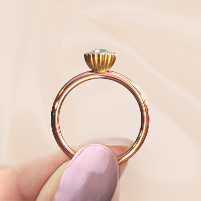 Dieser charmant Verlobungsring aus 14 Karat Roségold mit 4.2 mm Aquamarin heißt Queen. Für Sie gibt es nur eine Person in Ihrem Leben, die in einer Menschenmenge auffällt. Nur eine, die Ihr Herz höherschlagen lässt. Ein wahres Juwel! Sie verdient vor allem ein besonderes Geschenk. Ein einzigartiges, maßgefertigtes Schmuckstück, das allein zu ihren Ehren angefertigt wurde. Wir glauben, dass dieser Ring perfekt für Ihren besonderen Moment ist. Jedes Detail dieses exklusiven, Roségold Cluster Verlobungsring wird von Hand ausgewählt, bearbeitet und poliert - von unserem erfahrenen Juwelier in unserem eigenen Studio. Wir streben nach dem perfekten Design und der Zusammensetzung des Rings, damit er die einzigartigen Eigenschaften unserer Aquamarins unterstreicht und sie noch heller erstrahlen lässt. Es braucht viel Präzision, aber am Ende zahlt es sich wegen der Schönheit des Rings aus. Und das ist unser Hauptziel. Das ist es, was uns begeistert. Das Besondere an unserem Konfigurator ist dass Sie selbst einem Schmuckstück zusammenstellen können zu einem eigenen persönlichen Schmuckstück. Dieser Cluster Verlobungsring ist gefertigt in der Edelmetall Kombination Roségold mit Gold, aber Sie können also auch wählen aus anderen Farben. Jedes Schmuckstück wird von unseren Meister-Goldschmieden in unserem eigenen Studio für Sie gefertigt.. Haben Sie ein bestimmtes Budget? Sie können uns gerne kontaktieren, damit wir Ihre Optionen besprechen können. Wir bieten unsere Verlobungsringe zum garantiert besten Preis, denn wir fertigen sie auf Bestellung. Solche Preise finden Sie nirgendwo anders!Unser Team fügt unserer Online-Kollektion täglich neue Designs hinzu. Unsere Designer und Goldschmiede arbeiten zusammen, um das beste Design zu kreieren. Wir bemühen uns, eine vielfältige Kollektion von Schmuckstücken anzubieten. Vielleicht haben Sie ein bestimmtes Design im Sinn. Eines, dass Sie irgendwo gesehen haben. Gerne geben wir Ihnen eine kostenlose Beratung. Wir machen Ihnen ein Angebot, basierend auf einem fairen Preis/Leistungsverhältnis, das Sie verblüffen wird.Um es einfacher zu machen, bieten wir eine kostenlose 30-tägige Rücksendung.