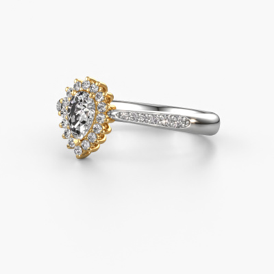 Der oben gezeigte Ring, mit dem Namen Tilly per 2, nennen wir einen Cluster Verlobungsring. Der Cluster Ring trägt einem zentralen Edelstein, umgeben von kleineren Steinen. Diese Version in 14 Karat Weißgold hat einen tropfen Zirkonia von tropfen als Mittelstein, umschlossen von kleineren Diamanten. Was diesen exklusive Weißgold Cluster Ring besonders macht, sind die kleinen Edelsteine rund um den zentralen Zirkonia, die wie eine schöne Blume geformt sind. Der umgebende Steinkranz umrahmt den Mittelstein so, dass er größer erscheint. Diese Art von Verlobungsring wird auch Blumen- oder Rosettenring genannt. Es ist sehr wichtig, dass die kleineren Zirkonia identisch positioniert sind, so dass es kein Spiel im Licht, sondern eine perfekte Einheit ergibt. Unsere erfahrenen Juweliere erledigen diese Arbeit. Jeder einzelne Stein wird sorgfältig von Hand gesetzt. Während der Herstellung wird der Lichteinfall ständig überwacht, um sicherzustellen, dass der spezielle Cluster-Effekt noch sichtbar ist. Am Ende bekommen Sie den perfekten Verlobungsring mit einem strahlenden Zirkonia Edelstein Herzstück. Sie können sich die Wirkung eines solchen Ringes vorstellen, wenn Sie ihn an ihrem besonderen Tag für die Liebe Ihres Lebens zum Leuchten bringen. Jedes Schmuckstück wird nur für Sie persönlich hergestellt, mit Liebe zum Detail und Design.Nach Erhalt Ihrer Bestellung beginnen unsere Goldschmiede mit Leidenschaft den kreativen Prozess und fertigen Ihren Verlobungsring in unserem eigenen Studio. Da wir keine großen Lager haben, werden diese Kosten nicht an Sie weitergegeben. Unsere Preisgestaltung ist der Beweis dafür! Wir bieten Schmuck zum niedrigsten Preis, garantiert.Verschiedene Arten von neuen Ringen werden täglich von unserem Team angefertigt. Vielleicht haben Sie irgendwo einen Cluster Verlobungsring gefunden. Einen, den Sie Ihrem Liebsten schenken möchten. Bitte zögern Sie nicht, unseren Schmuckdesignern Ihre Gedanken und Ihr Design zu zeigen. Wir würden gerne Ihr Design in einen exklusive Verlobungsring verwandeln. Sie können die Entwicklungen Ihres Ringdesigns verfolgen, da wir sehr detaillierte 3D-Zeichnungen verwenden. Darüber hinaus können Sie einen Dummy des Designs bestellen. Ein Dummy ist ein Kunststoffring, der nach Ihrem Ringdesign gestaltet werden kann. Sie können ihn anprobieren und prüfen, ob der Verlobungsring Ihren Vorstellungen entspricht. Wir senden Ihnen gerne ein unverbindliches Angebot zu einem fairen Preis/Leistungsverhältnis. Das Angebot wird Sie angesichts der Qualität des Rings und der Edelsteine verblüffen.Um es einfacher zu machen, bieten wir eine kostenlose 30-tägige Rücksendung.