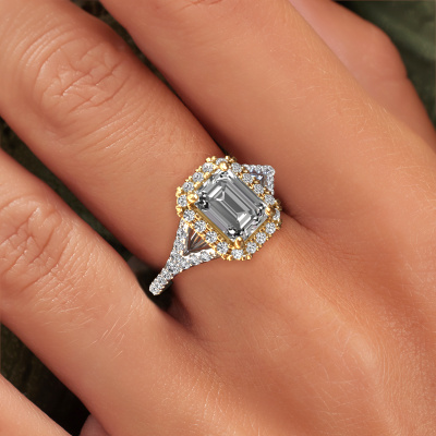 Der oben gezeigte Weißgold Verlobungsring wird Kimber EME genannt. Es ist ein Pavé Solitär Ring, da er einen zentralen Edelstein und ein Band mit Pavé-Fassung hat. Der exklusive Pavé Solitär Verlobungsring ist in der Kombination 14 Karat Weißgold mit Gold und ist mit einem smaragd schliff 8x6 mm custom diamant-Mittelstein besetzt und das Band hat eine Pavé-Fassung mit Lab grown Diamant. Jedes Schmuckstück wird hergestellt von einem Team leidenschaftlicher Goldschmiede und Schmuckdesigner. Das wird Ihr Kronjuwel unbedingt zu einem Blickfang machen. Um den zentralen Stein noch mehr zu betonen, hat das Band eine Pavé-Fassung mit weiteren custom diamant. Durch die offenen Krappen kann das Licht aus mehreren Winkeln auf den custom diamant treffen und der custom diamant-Ring funkelt noch mehr. Das obere Foto zeigt die leidenschaftlich handgefertigten Details des Rings. Die hohe Positionierung der Mittelstein ist ein echter Blickfang. Der perfekte Verlobungsring für das Kronjuwel Ihres Lebens!Durch die Kombination modernster Technik mit uralter Handwerkskunst können wir alle Verlobungsringe in unserem eigenen Studio anfertigen. Jedes Schmuckstück wird auf Anfrage gefertigt. Das ist vorteilhaft, weil wir Ihnen dadurch einen Preis anbieten können, den Sie nirgendwo anders finden.Unser Team fügt unserer Online-Kollektion täglich neue Designs hinzu. Unsere Designer und Goldschmiede arbeiten zusammen, um das beste Design zu kreieren. Wir bemühen uns, eine vielfältige Kollektion von Schmuckstücken anzubieten. Vielleicht haben Sie ein bestimmtes Design im Sinn. Eines, dass Sie irgendwo gesehen haben. Gerne geben wir Ihnen eine kostenlose Beratung. Wir machen Ihnen ein Angebot, basierend auf einem fairen Preis/Leistungsverhältnis, das Sie verblüffen wird.Um es einfacher zu machen, bieten wir eine kostenlose 30-tägige Rücksendung.