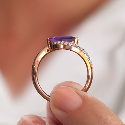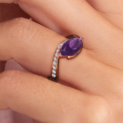 Dieser Verlobungsring aus 585 Roségold heißt Aida MRQ side. Sind Sie auf der Suche nach einem design, Roségold Verlobungsring mit Amethyst 11x5.5 mm, den Sie nach Ihren Wünschen gestalten können? Dieser design Verlobungsring ist mit Amethyst besetzt, der sorgfältig für diesen speziellen Ring ausgewählt wurde, um den besten Effekt zu erzielen. Unser erfahrener Juwelier kreiert Ihren Ring in unserem eigenen Studio eine Etage tiefer, wo der Amethyst mit großer Sorgfalt eingefasst wird. Der Ring wird dann bearbeitet und poliert, bis er perfekt ist. Nichts als das Beste für die Liebe Ihres Lebens! Das Besondere an unserem Konfigurator ist dass Sie selbst einem Schmuckstück zusammenstellen können zu einem eigenen persönlichen Schmuckstück. Jedes Schmuckstück wird hergestellt mit Leidenschaft und Liebe, von einem unserer Meister-Goldschmiede.. Haben Sie ein bestimmtes Budget? Sie können uns gerne kontaktieren, damit wir Ihre Optionen besprechen können. Wir bieten unsere Verlobungsringe zum garantiert besten Preis, denn wir fertigen sie auf Bestellung. Solche Preise finden Sie nirgendwo anders!Unser Team fügt unserer Online-Kollektion täglich neue Designs hinzu. Unsere Designer und Goldschmiede arbeiten zusammen, um das beste Design zu kreieren. Wir bemühen uns, eine vielfältige Kollektion von Schmuckstücken anzubieten. Vielleicht haben Sie ein bestimmtes Design im Sinn. Eines, dass Sie irgendwo gesehen haben. Gerne geben wir Ihnen eine kostenlose Beratung. Wir machen Ihnen ein Angebot, basierend auf einem fairen Preis/Leistungsverhältnis, das Sie verblüffen wird.Um es einfacher zu machen, bieten wir eine kostenlose 30-tägige Rücksendung.
