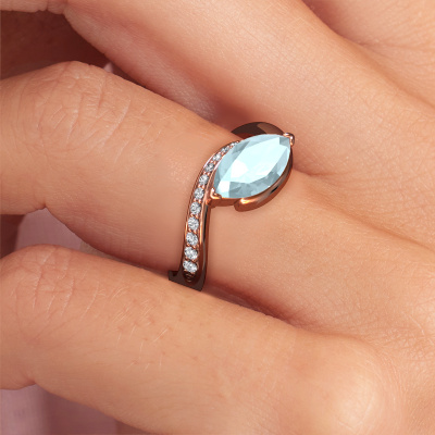 Dieser Verlobungsring aus 585 Roségold heißt Aida MRQ side. Sind Sie auf der Suche nach einem design, Roségold Verlobungsring mit Aquamarin 11x5.5 mm, den Sie nach Ihren Wünschen gestalten können? Dieser design Verlobungsring ist mit Aquamarin besetzt, der sorgfältig für diesen speziellen Ring ausgewählt wurde, um den besten Effekt zu erzielen. Unser erfahrener Juwelier kreiert Ihren Ring in unserem eigenen Studio eine Etage tiefer, wo der Aquamarin mit großer Sorgfalt eingefasst wird. Der Ring wird dann bearbeitet und poliert, bis er perfekt ist. Nichts als das Beste für die Liebe Ihres Lebens! Das Besondere an unserem Konfigurator ist dass Sie selbst einem Schmuckstück zusammenstellen können zu einem eigenen persönlichen Schmuckstück. Jedes Schmuckstück wird hergestellt mit Leidenschaft und Liebe, von einem unserer Meister-Goldschmiede.. Haben Sie ein bestimmtes Budget? Sie können uns gerne kontaktieren, damit wir Ihre Optionen besprechen können. Wir bieten unsere Verlobungsringe zum garantiert besten Preis, denn wir fertigen sie auf Bestellung. Solche Preise finden Sie nirgendwo anders!Unser Team fügt unserer Online-Kollektion täglich neue Designs hinzu. Unsere Designer und Goldschmiede arbeiten zusammen, um das beste Design zu kreieren. Wir bemühen uns, eine vielfältige Kollektion von Schmuckstücken anzubieten. Vielleicht haben Sie ein bestimmtes Design im Sinn. Eines, dass Sie irgendwo gesehen haben. Gerne geben wir Ihnen eine kostenlose Beratung. Wir machen Ihnen ein Angebot, basierend auf einem fairen Preis/Leistungsverhältnis, das Sie verblüffen wird.Um es einfacher zu machen, bieten wir eine kostenlose 30-tägige Rücksendung.