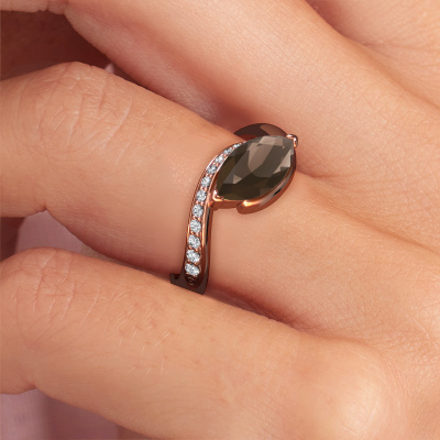 Dieser Verlobungsring aus 585 Roségold heißt Aida MRQ side. Sind Sie auf der Suche nach einem design, Roségold Verlobungsring mit Rauchquarz 11x5.5 mm, den Sie nach Ihren Wünschen gestalten können? Dieser design Verlobungsring ist mit Rauchquarz besetzt, der sorgfältig für diesen speziellen Ring ausgewählt wurde, um den besten Effekt zu erzielen. Unser erfahrener Juwelier kreiert Ihren Ring in unserem eigenen Studio eine Etage tiefer, wo der Rauchquarz mit großer Sorgfalt eingefasst wird. Der Ring wird dann bearbeitet und poliert, bis er perfekt ist. Nichts als das Beste für die Liebe Ihres Lebens! Das Besondere an unserem Konfigurator ist dass Sie selbst einem Schmuckstück zusammenstellen können zu einem eigenen persönlichen Schmuckstück. Jedes Schmuckstück wird hergestellt mit Leidenschaft und Liebe, von einem unserer Meister-Goldschmiede.. Haben Sie ein bestimmtes Budget? Sie können uns gerne kontaktieren, damit wir Ihre Optionen besprechen können. Wir bieten unsere Verlobungsringe zum garantiert besten Preis, denn wir fertigen sie auf Bestellung. Solche Preise finden Sie nirgendwo anders!Unser Team fügt unserer Online-Kollektion täglich neue Designs hinzu. Unsere Designer und Goldschmiede arbeiten zusammen, um das beste Design zu kreieren. Wir bemühen uns, eine vielfältige Kollektion von Schmuckstücken anzubieten. Vielleicht haben Sie ein bestimmtes Design im Sinn. Eines, dass Sie irgendwo gesehen haben. Gerne geben wir Ihnen eine kostenlose Beratung. Wir machen Ihnen ein Angebot, basierend auf einem fairen Preis/Leistungsverhältnis, das Sie verblüffen wird.Um es einfacher zu machen, bieten wir eine kostenlose 30-tägige Rücksendung.