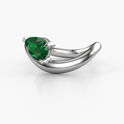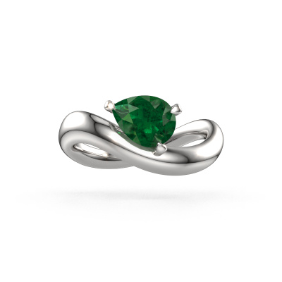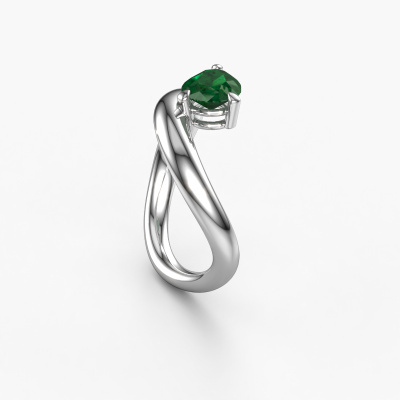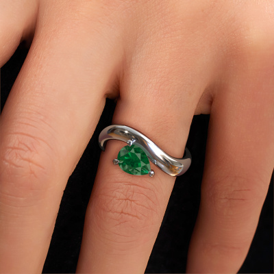 Der oben gezeigte Verlobungsring wird Chloe PER genannt. Wir nennen das einen Solitär-Ring, denn er hat einen einzelnen Edelstein. Es ist ein 14 Karat Weißgold Verlobungsring, mit 8x6 mm tropfen Smaragd. Dieser außergewöhnliche, design Weißgold