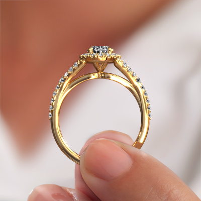 Der oben gezeigte Gold Verlobungsring wird Kimber OVL genannt. Es ist ein Pavé Solitär Ring, da er einen zentralen Edelstein und ein Band mit Pavé-Fassung hat. Der exklusive Pavé Solitär Verlobungsring ist in der Kombination 585 Gold mit Gold und ist mit einem oval 0.80 crt Diamant-Mittelstein besetzt und das Band hat eine Pavé-Fassung mit Lab grown Diamant. Jedes Schmuckstück wird hergestellt mit Leidenschaft und Liebe, von einem unserer Meister-Goldschmiede. Um den zentralen Stein noch mehr zu betonen, hat das Band eine Pavé-Fassung mit weiteren Diamant. Durch die offenen Krappen kann das Licht aus mehreren Winkeln auf den Diamant treffen und der Diamant-Ring funkelt noch mehr. Das obere Foto zeigt die leidenschaftlich handgefertigten Details des Rings. Die hohe Positionierung der Mittelstein ist ein echter Blickfang. Der perfekte Verlobungsring für das Kronjuwel Ihres Lebens!Durch die Kombination modernster Technik mit uralter Handwerkskunst können wir alle Verlobungsringe in unserem eigenen Studio anfertigen. Jedes Schmuckstück wird auf Anfrage gefertigt. Das ist vorteilhaft, weil wir Ihnen dadurch einen Preis anbieten können, den Sie nirgendwo anders finden.Unser Team fügt unserer Online-Kollektion täglich neue Designs hinzu. Unsere Designer und Goldschmiede arbeiten zusammen, um das beste Design zu kreieren. Wir bemühen uns, eine vielfältige Kollektion von Schmuckstücken anzubieten. Vielleicht haben Sie ein bestimmtes Design im Sinn. Eines, dass Sie irgendwo gesehen haben. Gerne geben wir Ihnen eine kostenlose Beratung. Wir machen Ihnen ein Angebot, basierend auf einem fairen Preis/Leistungsverhältnis, das Sie verblüffen wird.Um es einfacher zu machen, bieten wir eine kostenlose 30-tägige Rücksendung.