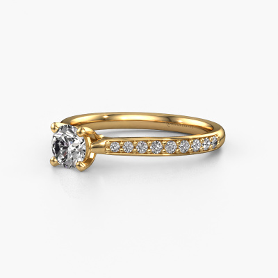 Der oben gezeigte Gold Verlobungsring wird Mignon rnd 2 genannt. Es ist ein Pavé Solitär Ring, da er einen zentralen Edelstein und ein Band mit Pavé-Fassung hat. Der Luxus Pavé Solitär Verlobungsring ist in der Kombination 14 Karat Gold mit Gold und ist mit einem rund 0.50 crt Diamant-Mittelstein besetzt und das Band hat eine Pavé-Fassung mit Lab grown Diamant. Jedes Schmuckstück wird hergestellt von einem Team leidenschaftlicher Goldschmiede und Schmuckdesigner. Das wird Ihr Kronjuwel unbedingt zu einem Blickfang machen. Um den zentralen Stein noch mehr zu betonen, hat das Band eine Pavé-Fassung mit weiteren Diamant. Durch die offenen Krappen kann das Licht aus mehreren Winkeln auf den Diamant treffen und der Diamant-Ring funkelt noch mehr. Das obere Foto zeigt die leidenschaftlich handgefertigten Details des Rings. Die hohe Positionierung der Mittelstein ist ein echter Blickfang. Der perfekte Verlobungsring für das Kronjuwel Ihres Lebens!Mit unserer modernen Technik können wir Schmuckstücke von höchster Qualität mit größter Sorgfalt für Sie entwerfen und anpassen. Unsere Verlobungsringe sind immer um 30 Prozent günstiger als bei anderen Juwelieren. Wir fertigen Verlobungsringe auf Bestellung, also müssen wir keine großen Lager unterhalten. Wenn Sie ein bestimmtes Budget haben, beraten wir Sie gerne entsprechend.Verschiedene Arten von neuen Ringen werden täglich von unserem Team angefertigt. Vielleicht haben Sie irgendwo einen Pavé Solitär Verlobungsring gefunden. Einen, den Sie Ihrem Liebsten schenken möchten. Bitte zögern Sie nicht, unseren Schmuckdesignern Ihre Gedanken und Ihr Design zu zeigen. Wir würden gerne Ihr Design in einen Luxus Verlobungsring verwandeln. Sie können die Entwicklungen Ihres Ringdesigns verfolgen, da wir sehr detaillierte 3D-Zeichnungen verwenden. Darüber hinaus können Sie einen Dummy des Designs bestellen. Ein Dummy ist ein Kunststoffring, der nach Ihrem Ringdesign gestaltet werden kann. Sie können ihn anprobieren und prüfen, ob der Verlobungsring Ihren Vorstellungen entspricht. Wir senden Ihnen gerne ein unverbindliches Angebot zu einem fairen Preis/Leistungsverhältnis. Das Angebot wird Sie angesichts der Qualität des Rings und der Edelsteine verblüffen.Um es einfacher zu machen, bieten wir eine kostenlose 30-tägige Rücksendung.