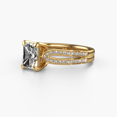 Der oben gezeigte Gold Verlobungsring wird Antonia rad 2 genannt. Es ist ein Pavé Solitär Ring, da er einen zentralen Edelstein und ein Band mit Pavé-Fassung hat. Der schicke Pavé Solitär Verlobungsring ist in der Kombination 14 Karat Gold mit Gold und ist mit einem radiant 1.00 crt Diamant-Mittelstein besetzt und das Band hat eine Pavé-Fassung mit Diamanten. Jedes Schmuckstück wird von unseren Meister-Goldschmieden in unserem eigenen Studio für Sie gefertigt. Um den zentralen Stein noch mehr zu betonen, hat das Band eine Pavé-Fassung mit weiteren Diamant. Durch die offenen Krappen kann das Licht aus mehreren Winkeln auf den Diamant treffen und der Diamant-Ring funkelt noch mehr. Das obere Foto zeigt die leidenschaftlich handgefertigten Details des Rings. Die hohe Positionierung der Mittelstein ist ein echter Blickfang. Der perfekte Verlobungsring für das Kronjuwel Ihres Lebens!Da wir unsere eigenen Ringe entwerfen und liefern, können wir Ihnen einen Verlobungsring zu einem Preis anbieten, den Sie nirgendwo anders finden. Ein Ring wird auf Bestellung angefertigt, wodurch kein überschüssiges Material anfällt. So können wir Ihnen ein gutes Angebot zum besten Preis machen. Wir verstehen, dass es sich riskant anfühlt, Ihren Verlobungsring online zu kaufen. Jedoch helfen wir Ihnen gerne beim Designprozess unter Berücksichtigung Ihres Budgets.Unser Team fügt unserer Online-Kollektion täglich neue Designs hinzu. Unsere Designer und Goldschmiede arbeiten zusammen, um das beste Design zu kreieren. Wir bemühen uns, eine vielfältige Kollektion von Schmuckstücken anzubieten. Vielleicht haben Sie ein bestimmtes Design im Sinn. Eines, dass Sie irgendwo gesehen haben. Gerne geben wir Ihnen eine kostenlose Beratung. Wir machen Ihnen ein Angebot, basierend auf einem fairen Preis/Leistungsverhältnis, das Sie verblüffen wird.Um es einfacher zu machen, bieten wir eine kostenlose 30-tägige Rücksendung.