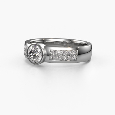 Der oben gezeigte Platin Verlobungsring wird Ise 3 genannt. Es ist ein Pavé Solitär Ring, da er einen zentralen Edelstein und ein Band mit Pavé-Fassung hat. Der moderne Pavé Solitär Verlobungsring ist in der Kombination Platin mit Platin und ist mit einem rund 0.50 crt Diamant-Mittelstein besetzt und das Band hat eine Pavé-Fassung mit Diamanten. Jedes Schmuckstück wird von unseren Meister-Goldschmieden in unserem eigenen Studio für Sie gefertigt. Um den zentralen Stein noch mehr zu betonen, hat das Band eine Pavé-Fassung mit weiteren Diamant. Durch die offenen Krappen kann das Licht aus mehreren Winkeln auf den Diamant treffen und der Diamant-Ring funkelt noch mehr. Das obere Foto zeigt die leidenschaftlich handgefertigten Details des Rings. Die hohe Positionierung der Mittelstein ist ein echter Blickfang. Der perfekte Verlobungsring für das Kronjuwel Ihres Lebens!Da wir unsere eigenen Ringe entwerfen und liefern, können wir Ihnen einen Verlobungsring zu einem Preis anbieten, den Sie nirgendwo anders finden. Ein Ring wird auf Bestellung angefertigt, wodurch kein überschüssiges Material anfällt. So können wir Ihnen ein gutes Angebot zum besten Preis machen. Wir verstehen, dass es sich riskant anfühlt, Ihren Verlobungsring online zu kaufen. Jedoch helfen wir Ihnen gerne beim Designprozess unter Berücksichtigung Ihres Budgets.Unser Team fügt unserer Online-Kollektion täglich neue Designs hinzu. Unsere Designer und Goldschmiede arbeiten zusammen, um das beste Design zu kreieren. Wir bemühen uns, eine vielfältige Kollektion von Schmuckstücken anzubieten. Vielleicht haben Sie ein bestimmtes Design im Sinn. Eines, dass Sie irgendwo gesehen haben. Gerne geben wir Ihnen eine kostenlose Beratung. Wir machen Ihnen ein Angebot, basierend auf einem fairen Preis/Leistungsverhältnis, das Sie verblüffen wird.Um es einfacher zu machen, bieten wir eine kostenlose 30-tägige Rücksendung.