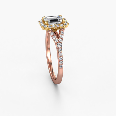 Der oben gezeigte Roségold Verlobungsring wird Kimber EME genannt. Es ist ein Pavé Solitär Ring, da er einen zentralen Edelstein und ein Band mit Pavé-Fassung hat. Der exklusive Pavé Solitär Verlobungsring ist in der Kombination 585 Roségold mit Roségold und ist mit einem smaragd schliff 0.90 crt Diamant-Mittelstein besetzt und das Band hat eine Pavé-Fassung mit Lab grown Diamant. Jedes Schmuckstück wird hergestellt von einem Team leidenschaftlicher Goldschmiede und Schmuckdesigner. Das wird Ihr Kronjuwel unbedingt zu einem Blickfang machen. Um den zentralen Stein noch mehr zu betonen, hat das Band eine Pavé-Fassung mit weiteren Diamant. Durch die offenen Krappen kann das Licht aus mehreren Winkeln auf den Diamant treffen und der Diamant-Ring funkelt noch mehr. Das obere Foto zeigt die leidenschaftlich handgefertigten Details des Rings. Die hohe Positionierung der Mittelstein ist ein echter Blickfang. Der perfekte Verlobungsring für das Kronjuwel Ihres Lebens!Durch die Kombination modernster Technik mit uralter Handwerkskunst können wir alle Verlobungsringe in unserem eigenen Studio anfertigen. Jedes Schmuckstück wird auf Anfrage gefertigt. Das ist vorteilhaft, weil wir Ihnen dadurch einen Preis anbieten können, den Sie nirgendwo anders finden.Unser Team fügt unserer Online-Kollektion täglich neue Designs hinzu. Unsere Designer und Goldschmiede arbeiten zusammen, um das beste Design zu kreieren. Wir bemühen uns, eine vielfältige Kollektion von Schmuckstücken anzubieten. Vielleicht haben Sie ein bestimmtes Design im Sinn. Eines, dass Sie irgendwo gesehen haben. Gerne geben wir Ihnen eine kostenlose Beratung. Wir machen Ihnen ein Angebot, basierend auf einem fairen Preis/Leistungsverhältnis, das Sie verblüffen wird.Um es einfacher zu machen, bieten wir eine kostenlose 30-tägige Rücksendung.