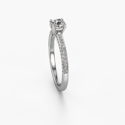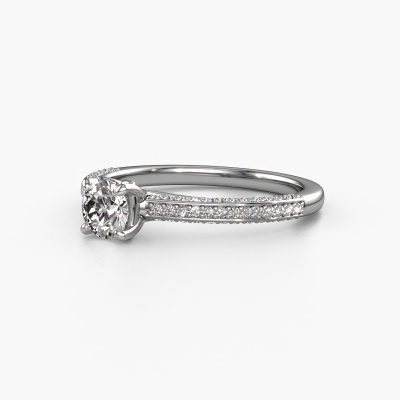 Der oben gezeigte Ring wird Elenore rnd genannt. Es ist ein Pavé Solitär Ring, da er einen zentralen Edelstein und ein Band mit Pavé-Fassung hat. Dieser 14 Karat Weißgold ring ist mit einem 0.40 crt rund Diamant-Mittelstein besetzt und das Band hat eine Pavé-Fassung mit Lab grown Diamant. Jedes Schmuckstück wird von unseren Meister-Goldschmieden in unserem eigenen Studio für Sie gefertigt.Dieser exklusive Weißgold Pavé Solitär Verlobungsring mit Pavé-Fassung hat einen exquisiten, rund Diamant als Mittelstein. Um den zentralen Stein noch mehr zu betonen, hat das Band eine Pavé-Fassung mit weiteren Lab grown Diamant. Durch die offenen Krappen kann das Licht aus mehreren Winkeln auf den Diamant treffen und der Diamant-Ring funkelt noch mehr. Das obere Foto zeigt die leidenschaftlich handgefertigten Details des Rings. Die hohe Positionierung der Mittelstein ist ein echter Blickfang. Der perfekte Verlobungsring für das Kronjuwel Ihres Lebens!Durch die Kombination modernster Technik mit uralter Handwerkskunst können wir alle Verlobungsringe in unserem eigenen Studio anfertigen. Jedes Schmuckstück wird auf Anfrage gefertigt. Das ist vorteilhaft, weil wir Ihnen dadurch einen Preis anbieten können, den Sie nirgendwo anders finden.Haben Sie irgendwo einen bestimmten Verlobungsring gefunden, den Sie Ihrem Liebsten schenken möchten? Sie können uns gerne sagen, was Sie wollen und wir werden Ihr Design in einen Einzigartigen exklusive Verlobungsring verwandeln. Sie können die Entwicklungen Ihres Ringdesigns verfolgen, da wir 3D-Zeichnungen verwenden. Das gibt Ihnen eine realistische Vorschau, wie Ihr Design aussehen wird. Sie können auch einen Dummy vorbestellen. Ein Dummy ist ein Kunststoffring, der nach Ihrem Ringdesign gestaltet werden kann. Sie können ihn anprobieren und prüfen, ob seine Breite und Größe für Sie geeignet sind. Wir senden Ihnen gerne ein unverbindliches Angebot zu einem fairen Preis/Leistungsverhältnis. Sie werden in Anbetracht der Qualität des Rings und der Edelsteine überrascht sein.Um es einfacher zu machen, bieten wir eine kostenlose 30-tägige Rücksendung.