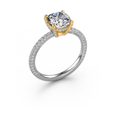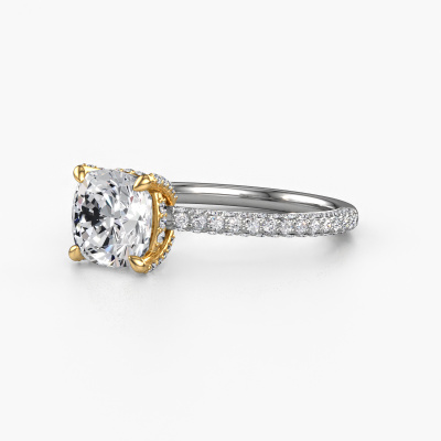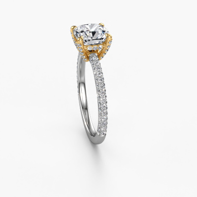 Der oben gezeigte Weißgold Verlobungsring wird Saskia 2 CUS genannt. Es ist ein Pavé Solitär Ring, da er einen zentralen Edelstein und ein Band mit Pavé-Fassung hat. Der moderne Pavé Solitär Verlobungsring ist in der Kombination 585 Weißgold mit Gold und ist mit einem cussion 2.00 crt Diamant-Mittelstein besetzt und das Band hat eine Pavé-Fassung mit Lab grown Diamant. Jedes Schmuckstück wird nur für Sie persönlich hergestellt, mit Liebe zum Detail und Design. Um den zentralen Stein noch mehr zu betonen, hat das Band eine Pavé-Fassung mit weiteren Diamant. Durch die offenen Krappen kann das Licht aus mehreren Winkeln auf den Diamant treffen und der Diamant-Ring funkelt noch mehr. Das obere Foto zeigt die leidenschaftlich handgefertigten Details des Rings. Die hohe Positionierung der Mittelstein ist ein echter Blickfang. Der perfekte Verlobungsring für das Kronjuwel Ihres Lebens!Haben Sie ein bestimmtes Budget? Sie können uns gerne kontaktieren, damit wir Ihre Optionen besprechen können. Wir bieten unsere Verlobungsringe zum garantiert besten Preis, denn wir fertigen sie auf Bestellung. Solche Preise finden Sie nirgendwo anders!Unsere Designer und Goldschmiede arbeiten jeden Tag zusammen und versuchen, neue Schmuckstücke zu kreieren. Vielleicht haben Sie irgendwo einen schönen, moderne Verlobungsring gefunden, nach dem Ihr einzigartiger Ring gestaltet werden kann. Setzen Sie sich mit uns in Verbindung. Wir machen Ihnen ein Angebot, basierend auf einem fairen Preis/Leistungsverhältnis, das Sie begeistern wird.Um es einfacher zu machen, bieten wir eine kostenlose 30-tägige Rücksendung.
