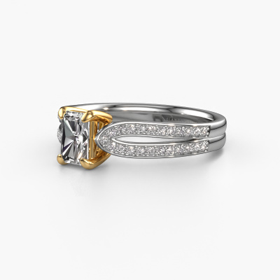 Der oben gezeigte Weißgold Verlobungsring wird Antonia rad 2 genannt. Es ist ein Pavé Solitär Ring, da er einen zentralen Edelstein und ein Band mit Pavé-Fassung hat. Der schicke Pavé Solitär Verlobungsring ist in der Kombination 14 Karat Weißgold mit Gold und ist mit einem radiant 0.65 crt Diamant-Mittelstein besetzt und das Band hat eine Pavé-Fassung mit Diamanten. Jedes Schmuckstück wird von unseren Meister-Goldschmieden in unserem eigenen Studio für Sie gefertigt. Um den zentralen Stein noch mehr zu betonen, hat das Band eine Pavé-Fassung mit weiteren Diamant. Durch die offenen Krappen kann das Licht aus mehreren Winkeln auf den Diamant treffen und der Diamant-Ring funkelt noch mehr. Das obere Foto zeigt die leidenschaftlich handgefertigten Details des Rings. Die hohe Positionierung der Mittelstein ist ein echter Blickfang. Der perfekte Verlobungsring für das Kronjuwel Ihres Lebens!Da wir unsere eigenen Ringe entwerfen und liefern, können wir Ihnen einen Verlobungsring zu einem Preis anbieten, den Sie nirgendwo anders finden. Ein Ring wird auf Bestellung angefertigt, wodurch kein überschüssiges Material anfällt. So können wir Ihnen ein gutes Angebot zum besten Preis machen. Wir verstehen, dass es sich riskant anfühlt, Ihren Verlobungsring online zu kaufen. Jedoch helfen wir Ihnen gerne beim Designprozess unter Berücksichtigung Ihres Budgets.Unser Team fügt unserer Online-Kollektion täglich neue Designs hinzu. Unsere Designer und Goldschmiede arbeiten zusammen, um das beste Design zu kreieren. Wir bemühen uns, eine vielfältige Kollektion von Schmuckstücken anzubieten. Vielleicht haben Sie ein bestimmtes Design im Sinn. Eines, dass Sie irgendwo gesehen haben. Gerne geben wir Ihnen eine kostenlose Beratung. Wir machen Ihnen ein Angebot, basierend auf einem fairen Preis/Leistungsverhältnis, das Sie verblüffen wird.Um es einfacher zu machen, bieten wir eine kostenlose 30-tägige Rücksendung.