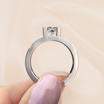 Der oben gezeigte Weißgold Verlobungsring wird Desire genannt. Es ist ein Pavé Solitär Ring, da er einen zentralen Edelstein und ein Band mit Pavé-Fassung hat. Der moderne Pavé Solitär Verlobungsring ist in der Kombination 14 Karat Weißgold mit Weißgold und ist mit einem princess 0.50 crt Diamant-Mittelstein besetzt und das Band hat eine Pavé-Fassung mit Diamanten. Jedes Schmuckstück wird von unseren Meister-Goldschmieden in unserem eigenen Studio für Sie gefertigt. Um den zentralen Stein noch mehr zu betonen, hat das Band eine Pavé-Fassung mit weiteren Diamant. Durch die offenen Krappen kann das Licht aus mehreren Winkeln auf den Diamant treffen und der Diamant-Ring funkelt noch mehr. Das obere Foto zeigt die leidenschaftlich handgefertigten Details des Rings. Die hohe Positionierung der Mittelstein ist ein echter Blickfang. Der perfekte Verlobungsring für das Kronjuwel Ihres Lebens!Durch die Kombination modernster Technik mit uralter Handwerkskunst können wir alle Verlobungsringe in unserem eigenen Studio anfertigen. Jedes Schmuckstück wird auf Anfrage gefertigt. Das ist vorteilhaft, weil wir Ihnen dadurch einen Preis anbieten können, den Sie nirgendwo anders finden.Haben Sie irgendwo einen bestimmten Verlobungsring gefunden, den Sie Ihrem Liebsten schenken möchten? Sie können uns gerne sagen, was Sie wollen und wir werden Ihr Design in einen Einzigartigen moderne Verlobungsring verwandeln. Sie können die Entwicklungen Ihres Ringdesigns verfolgen, da wir 3D-Zeichnungen verwenden. Das gibt Ihnen eine realistische Vorschau, wie Ihr Design aussehen wird. Sie können auch einen Dummy vorbestellen. Ein Dummy ist ein Kunststoffring, der nach Ihrem Ringdesign gestaltet werden kann. Sie können ihn anprobieren und prüfen, ob seine Breite und Größe für Sie geeignet sind. Wir senden Ihnen gerne ein unverbindliches Angebot zu einem fairen Preis/Leistungsverhältnis. Sie werden in Anbetracht der Qualität des Rings und der Edelsteine überrascht sein.Um es einfacher zu machen, bieten wir eine kostenlose 30-tägige Rücksendung.