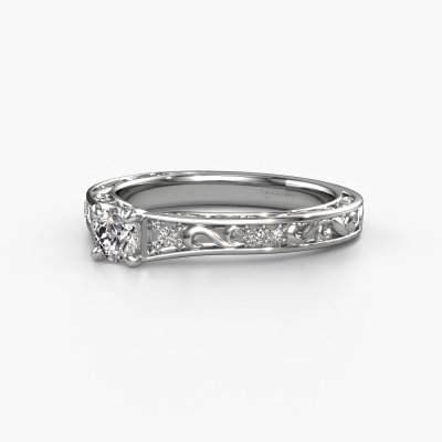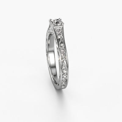Der oben gezeigte Ring wird Mallory rnd genannt. Es ist ein Pavé Solitär Ring, da er einen zentralen Edelstein und ein Band mit Pavé-Fassung hat. Dieser 14 Karat Weißgold ring ist mit einem 0.25 crt rund Diamant-Mittelstein besetzt und das Band hat eine Pavé-Fassung mit Lab grown Diamant. Jedes Schmuckstück wird von unseren Meister-Goldschmieden in unserem eigenen Studio für Sie gefertigt.Dieser Vintage Weißgold Pavé Solitär Verlobungsring mit Pavé-Fassung hat einen exquisiten, rund Diamant als Mittelstein. Um den zentralen Stein noch mehr zu betonen, hat das Band eine Pavé-Fassung mit weiteren Lab grown Diamant. Durch die offenen Krappen kann das Licht aus mehreren Winkeln auf den Diamant treffen und der Diamant-Ring funkelt noch mehr. Das obere Foto zeigt die leidenschaftlich handgefertigten Details des Rings. Die hohe Positionierung der Mittelstein ist ein echter Blickfang. Der perfekte Verlobungsring für das Kronjuwel Ihres Lebens!Da wir unsere eigenen Ringe entwerfen und liefern, können wir Ihnen einen Verlobungsring zu einem Preis anbieten, den Sie nirgendwo anders finden. Ein Ring wird auf Bestellung angefertigt, wodurch kein überschüssiges Material anfällt. So können wir Ihnen ein gutes Angebot zum besten Preis machen. Wir verstehen, dass es sich riskant anfühlt, Ihren Verlobungsring online zu kaufen. Jedoch helfen wir Ihnen gerne beim Designprozess unter Berücksichtigung Ihres Budgets.Verschiedene Arten von neuen Ringen werden täglich von unserem Team angefertigt. Vielleicht haben Sie irgendwo einen Pavé Solitär Verlobungsring gefunden. Einen, den Sie Ihrem Liebsten schenken möchten. Bitte zögern Sie nicht, unseren Schmuckdesignern Ihre Gedanken und Ihr Design zu zeigen. Wir würden gerne Ihr Design in einen Vintage Verlobungsring verwandeln. Sie können die Entwicklungen Ihres Ringdesigns verfolgen, da wir sehr detaillierte 3D-Zeichnungen verwenden. Darüber hinaus können Sie einen Dummy des Designs bestellen. Ein Dummy ist ein Kunststoffring, der nach Ihrem Ringdesign gestaltet werden kann. Sie können ihn anprobieren und prüfen, ob der Verlobungsring Ihren Vorstellungen entspricht. Wir senden Ihnen gerne ein unverbindliches Angebot zu einem fairen Preis/Leistungsverhältnis. Das Angebot wird Sie angesichts der Qualität des Rings und der Edelsteine verblüffen.Um es einfacher zu machen, bieten wir eine kostenlose 30-tägige Rücksendung.
