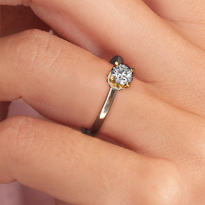 Der oben gezeigte Verlobungsring wird Crystal RND 3 genannt. Wir nennen das einen Solitär-Ring, denn er hat einen einzelnen Edelstein. Es ist ein 14 Karat Weißgold ring, mit 0.40 crt rund Diamant. Das Besondere an unserem Konfigurator ist dass Sie selbst einem Schmuckstück zusammenstellen können zu einem eigenen persönlichen Schmuckstück. Dieser Solitäre Verlobungsring ist gefertigt in der Edelmetall Kombination Weißgold mit Gold, aber Sie können also auch wählen aus anderen Farben. Jedes Schmuckstück wird hergestellt mit Leidenschaft und Liebe, von einem unserer Meister-Goldschmiede. Der Solitär-Verlobungsring ist eine Sonderform des Verlobungsring. Seine offenen Krappen ermöglichen, dass Licht aus mehr Winkeln auf den Edelstein trifft. Dieser klassische Verlobungsring ist durch die hohe Positionierung des Edelsteins ein atemberaubender Blickfang. Wir schmücken diesen Solitär-Ring sorgfältig von Hand, damit Sie Ihren Anfrage mit einem einzigartigen Ring würdigen können. Die Liebe Ihres Lebens verdient nur das Beste. Durch die Kombination modernster Technik mit uralter Handwerkskunst können wir alle Verlobungsringe in unserem eigenen Studio anfertigen. Jedes Schmuckstück wird auf Anfrage gefertigt. Das ist vorteilhaft, weil wir Ihnen dadurch einen Preis anbieten können, den Sie nirgendwo anders finden.Verschiedene Arten von neuen Ringen werden täglich von unserem Team angefertigt. Vielleicht haben Sie irgendwo einen Solitär Verlobungsring gefunden. Einen, den Sie Ihrem Liebsten schenken möchten. Bitte zögern Sie nicht, unseren Schmuckdesignern Ihre Gedanken und Ihr Design zu zeigen. Wir würden gerne Ihr Design in einen klassische Verlobungsring verwandeln. Sie können die Entwicklungen Ihres Ringdesigns verfolgen, da wir sehr detaillierte 3D-Zeichnungen verwenden. Darüber hinaus können Sie einen Dummy des Designs bestellen. Ein Dummy ist ein Kunststoffring, der nach Ihrem Ringdesign gestaltet werden kann. Sie können ihn anprobieren und prüfen, ob der Verlobungsring Ihren Vorstellungen entspricht. Wir senden Ihnen gerne ein unverbindliches Angebot zu einem fairen Preis/Leistungsverhältnis. Das Angebot wird Sie angesichts der Qualität des Rings und der Edelsteine verblüffen.Um es einfacher zu machen, bieten wir eine kostenlose 30-tägige Rücksendung.