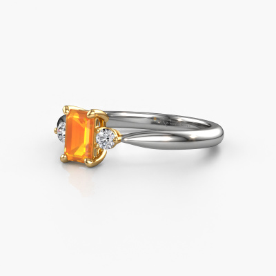 Dieser Verlobungsring aus 14 Karat Weißgold heißt Lieselot EME. Sind Sie auf der Suche nach einem exklusive, Weißgold Verlobungsring mit Citrin 6x4 mm, den Sie nach Ihren Wünschen gestalten können? Dieser exklusive Verlobungsring ist mit Citrin besetzt, der sorgfältig für diesen speziellen Ring ausgewählt wurde, um den besten Effekt zu erzielen. Unser erfahrener Juwelier kreiert Ihren Ring in unserem eigenen Studio eine Etage tiefer, wo der Citrin mit großer Sorgfalt eingefasst wird. Der Ring wird dann bearbeitet und poliert, bis er perfekt ist. Nichts als das Beste für die Liebe Ihres Lebens! Das Besondere an unserem Konfigurator ist dass Sie selbst einem Schmuckstück zusammenstellen können zu einem eigenen persönlichen Schmuckstück. Jedes Schmuckstück wird nur für Sie persönlich hergestellt, mit Liebe zum Detail und Design.. Nachdem Sie Ihre Bestellung aufgegeben haben, beginnen unsere Goldschmiede mit dem kreativen Prozess der Herstellung Ihres Lieselot EME Verlobungsring. Wir haben keine Lager. Das ist vorteilhaft, da diese Kosten nicht an Sie weitergegeben werden. Daher sind wir in der Lage, Schmuck zu außergewöhnlich niedrigen Preisen anzubieten.Verschiedene Arten von neuen Ringen werden täglich von unserem Team angefertigt. Vielleicht haben Sie irgendwo einen 3-stone Verlobungsring gefunden. Einen, den Sie Ihrem Liebsten schenken möchten. Bitte zögern Sie nicht, unseren Schmuckdesignern Ihre Gedanken und Ihr Design zu zeigen. Wir würden gerne Ihr Design in einen exklusive Verlobungsring verwandeln. Sie können die Entwicklungen Ihres Ringdesigns verfolgen, da wir sehr detaillierte 3D-Zeichnungen verwenden. Darüber hinaus können Sie einen Dummy des Designs bestellen. Ein Dummy ist ein Kunststoffring, der nach Ihrem Ringdesign gestaltet werden kann. Sie können ihn anprobieren und prüfen, ob der Verlobungsring Ihren Vorstellungen entspricht. Wir senden Ihnen gerne ein unverbindliches Angebot zu einem fairen Preis/Leistungsverhältnis. Das Angebot wird Sie angesichts der Qualität des Rings und der Edelsteine verblüffen.Um es einfacher zu machen, bieten wir eine kostenlose 30-tägige Rücksendung.
