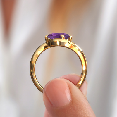 Dieser Verlobungsring aus 14 Karat Gold heißt Aida PER. Sind Sie auf der Suche nach einem Fantasie, Gold Verlobungsring mit Amethyst 9x7 mm, den Sie nach Ihren Wünschen gestalten können? Dieser Fantasie Verlobungsring ist mit Amethyst besetzt,