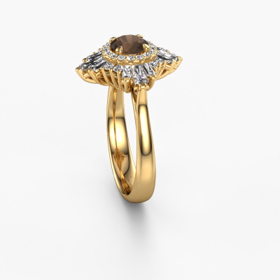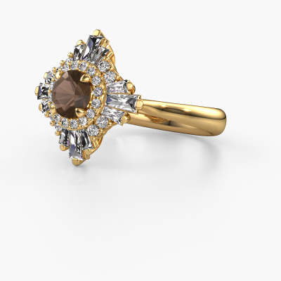 Dieser Verlobungsring aus 14 Karat Gold heißt Thalia und hat einen 5.4 mm Rauchquarz. Ein außergewöhnlicher, Gold Vintage Ring. Einer, der die Liebe Ihres Lebens mit Sicherheit wie ein Rauchquarz erstrahlen lässt! Das hoffen wir zu erreichen. Dieser Vintage Verlobungsring ist mit exquisiten Rauchquarz besetzt. Welchen Edelstein Sie aus unserer Auswahl haben möchten, liegt ganz bei Ihnen. Der Edelstein wird mit großer Sorgfalt ausgewählt. Denn wir glauben, dass Ihr besondere Verlobungsring nur mit dem schönsten Edelstein gekrönt sein darf. Sehen Sie das auch so? Unser erfahrener Juwelier entwirft Ihren Ring in unserem eigenen Studio, wo der Rauchquarz mit großer Präzision eingefasst wird. Der Ring wird dann bearbeitet und poliert, bis er perfekt ist. Nichts als das Beste für die Liebe Ihres Lebens! Jedes Schmuckstück wird hergestellt mit Leidenschaft und Liebe, von einem unserer Meister-Goldschmiede.Nach Erhalt Ihrer Bestellung beginnen unsere Goldschmiede mit Leidenschaft den kreativen Prozess und fertigen Ihren Verlobungsring in unserem eigenen Studio. Da wir keine großen Lager haben, werden diese Kosten nicht an Sie weitergegeben. Unsere Preisgestaltung ist der Beweis dafür! Wir bieten Schmuck zum niedrigsten Preis, garantiert.Haben Sie irgendwo einen bestimmten Verlobungsring gefunden, den Sie Ihrem Liebsten schenken möchten? Sie können uns gerne sagen, was Sie wollen und wir werden Ihr Design in einen Einzigartigen Vintage Verlobungsring verwandeln. Sie können die Entwicklungen Ihres Ringdesigns verfolgen, da wir 3D-Zeichnungen verwenden. Das gibt Ihnen eine realistische Vorschau, wie Ihr Design aussehen wird. Sie können auch einen Dummy vorbestellen. Ein Dummy ist ein Kunststoffring, der nach Ihrem Ringdesign gestaltet werden kann. Sie können ihn anprobieren und prüfen, ob seine Breite und Größe für Sie geeignet sind. Wir senden Ihnen gerne ein unverbindliches Angebot zu einem fairen Preis/Leistungsverhältnis. Sie werden in Anbetracht der Qualität des Rings und der Edelsteine überrascht sein.Um es einfacher zu machen, bieten wir eine kostenlose 30-tägige Rücksendung.