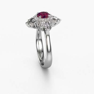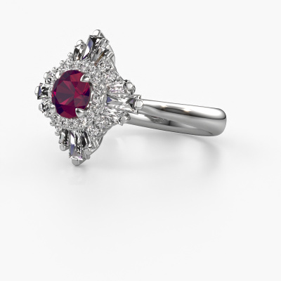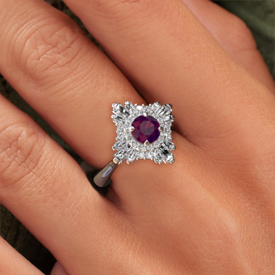 Dieser Verlobungsring aus Platin heißt Thalia und hat einen 5.4 mm Rhodolit. Ein außergewöhnlicher, Platin Vintage Ring. Einer, der die Liebe Ihres Lebens mit Sicherheit wie ein Rhodolit erstrahlen lässt! Das hoffen wir zu erreichen. Dieser Vintage Verlobungsring ist mit exquisiten Rhodolit besetzt. Welchen Edelstein Sie aus unserer Auswahl haben möchten, liegt ganz bei Ihnen. Der Edelstein wird mit großer Sorgfalt ausgewählt. Denn wir glauben, dass Ihr besondere Verlobungsring nur mit dem schönsten Edelstein gekrönt sein darf. Sehen Sie das auch so? Unser erfahrener Juwelier entwirft Ihren Ring in unserem eigenen Studio, wo der Rhodolit mit großer Präzision eingefasst wird. Der Ring wird dann bearbeitet und poliert, bis er perfekt ist. Nichts als das Beste für die Liebe Ihres Lebens! Jedes Schmuckstück wird hergestellt mit Leidenschaft und Liebe, von einem unserer Meister-Goldschmiede.Nach Erhalt Ihrer Bestellung beginnen unsere Goldschmiede mit Leidenschaft den kreativen Prozess und fertigen Ihren Verlobungsring in unserem eigenen Studio. Da wir keine großen Lager haben, werden diese Kosten nicht an Sie weitergegeben. Unsere Preisgestaltung ist der Beweis dafür! Wir bieten Schmuck zum niedrigsten Preis, garantiert.Haben Sie irgendwo einen bestimmten Verlobungsring gefunden, den Sie Ihrem Liebsten schenken möchten? Sie können uns gerne sagen, was Sie wollen und wir werden Ihr Design in einen Einzigartigen Vintage Verlobungsring verwandeln. Sie können die Entwicklungen Ihres Ringdesigns verfolgen, da wir 3D-Zeichnungen verwenden. Das gibt Ihnen eine realistische Vorschau, wie Ihr Design aussehen wird. Sie können auch einen Dummy vorbestellen. Ein Dummy ist ein Kunststoffring, der nach Ihrem Ringdesign gestaltet werden kann. Sie können ihn anprobieren und prüfen, ob seine Breite und Größe für Sie geeignet sind. Wir senden Ihnen gerne ein unverbindliches Angebot zu einem fairen Preis/Leistungsverhältnis. Sie werden in Anbetracht der Qualität des Rings und der Edelsteine überrascht sein.Um es einfacher zu machen, bieten wir eine kostenlose 30-tägige Rücksendung.