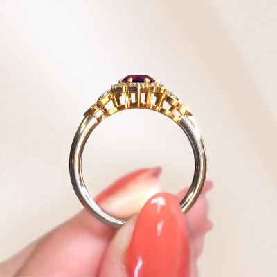 Dieser Verlobungsring aus 14 Karat Weißgold heißt Tatjana und hat einen 5 mm Rhodolit. Ein außergewöhnlicher, Weißgold Vintage Ring. Einer, der die Liebe Ihres Lebens mit Sicherheit wie ein Rhodolit erstrahlen lässt! Das hoffen wir zu erreichen. Dieser Vintage Verlobungsring ist mit exquisiten Rhodolit besetzt. Welchen Edelstein Sie aus unserer Auswahl haben möchten, liegt ganz bei Ihnen. Der Edelstein wird mit großer Sorgfalt ausgewählt. Denn wir glauben, dass Ihr zierliche Verlobungsring nur mit dem schönsten Edelstein gekrönt sein darf. Sehen Sie das auch so? Unser erfahrener Juwelier entwirft Ihren Ring in unserem eigenen Studio, wo der Rhodolit mit großer Präzision eingefasst wird. Der Ring wird dann bearbeitet und poliert, bis er perfekt ist. Nichts als das Beste für die Liebe Ihres Lebens! Jedes Schmuckstück wird hergestellt mit Leidenschaft und Liebe, von einem unserer Meister-Goldschmiede.Nach Erhalt Ihrer Bestellung beginnen unsere Goldschmiede mit Leidenschaft den kreativen Prozess und fertigen Ihren Verlobungsring in unserem eigenen Studio. Da wir keine großen Lager haben, werden diese Kosten nicht an Sie weitergegeben. Unsere Preisgestaltung ist der Beweis dafür! Wir bieten Schmuck zum niedrigsten Preis, garantiert.Haben Sie irgendwo einen bestimmten Verlobungsring gefunden, den Sie Ihrem Liebsten schenken möchten? Sie können uns gerne sagen, was Sie wollen und wir werden Ihr Design in einen Einzigartigen Vintage Verlobungsring verwandeln. Sie können die Entwicklungen Ihres Ringdesigns verfolgen, da wir 3D-Zeichnungen verwenden. Das gibt Ihnen eine realistische Vorschau, wie Ihr Design aussehen wird. Sie können auch einen Dummy vorbestellen. Ein Dummy ist ein Kunststoffring, der nach Ihrem Ringdesign gestaltet werden kann. Sie können ihn anprobieren und prüfen, ob seine Breite und Größe für Sie geeignet sind. Wir senden Ihnen gerne ein unverbindliches Angebot zu einem fairen Preis/Leistungsverhältnis. Sie werden in Anbetracht der Qualität des Rings und der Edelsteine überrascht sein.Um es einfacher zu machen, bieten wir eine kostenlose 30-tägige Rücksendung.