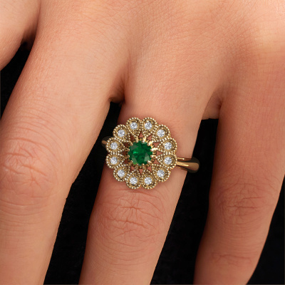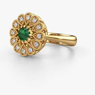 Dieser Perle Ränder Verlobungsring aus 14 Karat Gold heißt Kaat und hat 5 mm Smaragd. Ist Ihre Freundin von Vintage begeistert? Dann wird dieser Gold Verlobungsring sicherlich perfekt zu ihrem Stil passen. Ein trendiger Ring mit einem Hauch von klassischem Schmuck. Ein wirklich atemberaubendes, romantisches Design! Vor allem, wenn Sie den Ring nach ihren Wünschen anpassen. Dieser Vintage Flower Verlobungsring ist mit atemberaubenden Smaragd besetzt. Wie Sie sehen können, sind Sie der Boss bei der Auswahl des Edelsteins, der am besten zu Ihrer Freundin passt. Jeder Edelstein wird sorgfältig von unseren Händlern ausgewählt, die auf der ganzen Welt verteilt sind. Nichts als die besten Edelsteine für unseren erfahrenen Juwelier! Schließlich ist es seine Krönung! Jedes Schmuckstück ist um Ihrem Finger Glanz zu verleihen. Jeder Ring wird von unseren Goldschmieden liebevoll von Hand gefertigt.Da wir unsere eigenen Ringe entwerfen und liefern, können wir Ihnen einen Verlobungsring zu einem Preis anbieten, den Sie nirgendwo anders finden. Ein Ring wird auf Bestellung angefertigt, wodurch kein überschüssiges Material anfällt. So können wir Ihnen ein gutes Angebot zum besten Preis machen. Wir verstehen, dass es sich riskant anfühlt, Ihren Verlobungsring online zu kaufen. Jedoch helfen wir Ihnen gerne beim Designprozess unter Berücksichtigung Ihres Budgets.Unser Team fügt unserer Online-Kollektion täglich neue Designs hinzu. Unsere Designer und Goldschmiede arbeiten zusammen, um das beste Design zu kreieren. Wir bemühen uns, eine vielfältige Kollektion von Schmuckstücken anzubieten. Vielleicht haben Sie ein bestimmtes Design im Sinn. Eines, dass Sie irgendwo gesehen haben. Gerne geben wir Ihnen eine kostenlose Beratung. Wir machen Ihnen ein Angebot, basierend auf einem fairen Preis/Leistungsverhältnis, das Sie verblüffen wird.Um es einfacher zu machen, bieten wir eine kostenlose 30-tägige Rücksendung.