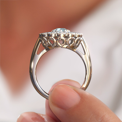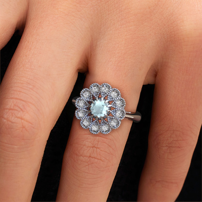 Dieser Perle Ränder Verlobungsring aus Platin heißt Kaat und hat 5 mm Aquamarin. Ist Ihre Freundin von Vintage begeistert? Dann wird dieser Platin Verlobungsring sicherlich perfekt zu ihrem Stil passen. Ein trendiger Ring mit einem Hauch von klassischem Schmuck. Ein wirklich atemberaubendes, romantisches Design! Vor allem, wenn Sie den Ring nach ihren Wünschen anpassen. Dieser Vintage Flower Verlobungsring ist mit atemberaubenden Aquamarins besetzt. Wie Sie sehen können, sind Sie der Boss bei der Auswahl des Edelsteins, der am besten zu Ihrer Freundin passt. Jeder Edelstein wird sorgfältig von unseren Händlern ausgewählt, die auf der ganzen Welt verteilt sind. Nichts als die besten Edelsteine für unseren erfahrenen Juwelier! Schließlich ist es seine Krönung! Jedes Schmuckstück ist um Ihrem Finger Glanz zu verleihen. Jeder Ring wird von unseren Goldschmieden liebevoll von Hand gefertigt.Da wir unsere eigenen Ringe entwerfen und liefern, können wir Ihnen einen Verlobungsring zu einem Preis anbieten, den Sie nirgendwo anders finden. Ein Ring wird auf Bestellung angefertigt, wodurch kein überschüssiges Material anfällt. So können wir Ihnen ein gutes Angebot zum besten Preis machen. Wir verstehen, dass es sich riskant anfühlt, Ihren Verlobungsring online zu kaufen. Jedoch helfen wir Ihnen gerne beim Designprozess unter Berücksichtigung Ihres Budgets.Unser Team fügt unserer Online-Kollektion täglich neue Designs hinzu. Unsere Designer und Goldschmiede arbeiten zusammen, um das beste Design zu kreieren. Wir bemühen uns, eine vielfältige Kollektion von Schmuckstücken anzubieten. Vielleicht haben Sie ein bestimmtes Design im Sinn. Eines, dass Sie irgendwo gesehen haben. Gerne geben wir Ihnen eine kostenlose Beratung. Wir machen Ihnen ein Angebot, basierend auf einem fairen Preis/Leistungsverhältnis, das Sie verblüffen wird.Um es einfacher zu machen, bieten wir eine kostenlose 30-tägige Rücksendung.
