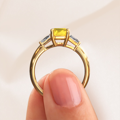 Dieser Verlobungsring aus 14 Karat Gold heißt Kina EME. Wie würden Sie den Stil der Liebe Ihres Lebens beschreiben? Hat sie einen einzigartigen Sinn für Stil? Diese umwerfende, besondere Gold Verlobungsring mit 8x6 mm Gelb Saphir kann nach Ihren Wünschen angefertigt werden. Unsere Gelb Saphir wurden sorgfältig ausgewählt. Denn wir denken, dass Ihr Verlobungsring nur mit dem schönsten Edelstein gekrönt werden darf. Sehen Sie das auch so? Jedes Schmuckstück wird hergestellt von einem Team leidenschaftlicher Goldschmiede und Schmuckdesigner. Das wird Ihr Kronjuwel unbedingt zu einem Blickfang machen.Haben Sie ein bestimmtes Budget? Sie können uns gerne kontaktieren, damit wir Ihre Optionen besprechen können. Wir bieten unsere Verlobungsringe zum garantiert besten Preis, denn wir fertigen sie auf Bestellung. Solche Preise finden Sie nirgendwo anders!Haben Sie irgendwo einen bestimmten Verlobungsring gefunden, den Sie Ihrem Liebsten schenken möchten? Sie können uns gerne sagen, was Sie wollen und wir werden Ihr Design in einen Einzigartigen exklusive Verlobungsring verwandeln. Sie können die Entwicklungen Ihres Ringdesigns verfolgen, da wir 3D-Zeichnungen verwenden. Das gibt Ihnen eine realistische Vorschau, wie Ihr Design aussehen wird. Sie können auch einen Dummy vorbestellen. Ein Dummy ist ein Kunststoffring, der nach Ihrem Ringdesign gestaltet werden kann. Sie können ihn anprobieren und prüfen, ob seine Breite und Größe für Sie geeignet sind. Wir senden Ihnen gerne ein unverbindliches Angebot zu einem fairen Preis/Leistungsverhältnis. Sie werden in Anbetracht der Qualität des Rings und der Edelsteine überrascht sein.Um es einfacher zu machen, bieten wir eine kostenlose 30-tägige Rücksendung.