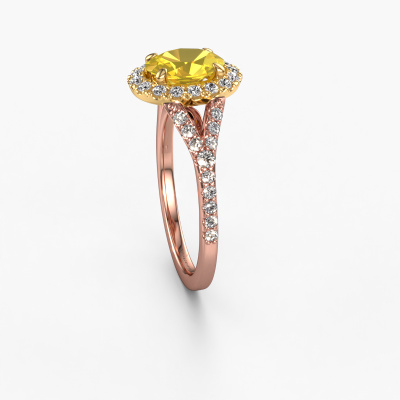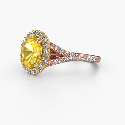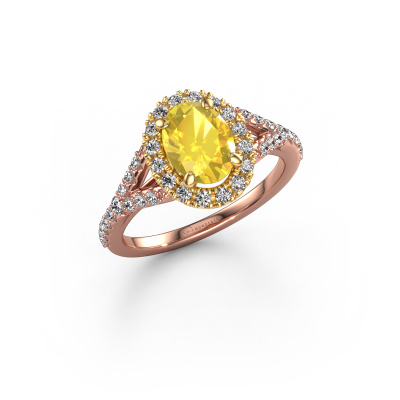 Der oben gezeigte Roségold Verlobungsring wird Kimber OVL genannt. Es ist ein Pavé Solitär Ring, da er einen zentralen Edelstein und ein Band mit Pavé-Fassung hat. Der exklusive Pavé Solitär Verlobungsring ist in der Kombination 14 Karat Roségold mit Gold und ist mit einem oval 8x6 mm Gelb Saphir-Mittelstein besetzt und das Band hat eine Pavé-Fassung mit Lab grown Diamant. Jedes Schmuckstück wird hergestellt mit Leidenschaft und Liebe, von einem unserer Meister-Goldschmiede. Um den zentralen Stein noch mehr zu betonen, hat das Band eine Pavé-Fassung mit weiteren Gelb Saphir. Durch die offenen Krappen kann das Licht aus mehreren Winkeln auf den Gelb Saphir treffen und der Gelb Saphir-Ring funkelt noch mehr. Das obere Foto zeigt die leidenschaftlich handgefertigten Details des Rings. Die hohe Positionierung der Mittelstein ist ein echter Blickfang. Der perfekte Verlobungsring für das Kronjuwel Ihres Lebens!Durch die Kombination modernster Technik mit uralter Handwerkskunst können wir alle Verlobungsringe in unserem eigenen Studio anfertigen. Jedes Schmuckstück wird auf Anfrage gefertigt. Das ist vorteilhaft, weil wir Ihnen dadurch einen Preis anbieten können, den Sie nirgendwo anders finden.Unser Team fügt unserer Online-Kollektion täglich neue Designs hinzu. Unsere Designer und Goldschmiede arbeiten zusammen, um das beste Design zu kreieren. Wir bemühen uns, eine vielfältige Kollektion von Schmuckstücken anzubieten. Vielleicht haben Sie ein bestimmtes Design im Sinn. Eines, dass Sie irgendwo gesehen haben. Gerne geben wir Ihnen eine kostenlose Beratung. Wir machen Ihnen ein Angebot, basierend auf einem fairen Preis/Leistungsverhältnis, das Sie verblüffen wird.Um es einfacher zu machen, bieten wir eine kostenlose 30-tägige Rücksendung.