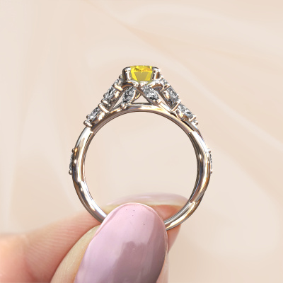 Dieser Verlobungsring aus 14 Karat Weißgold mit 7,5x5,5 mm Gelb Saphir heißt Samantha OVL. Was macht Ihre Beziehung einzigartig? Was hat sie an sich, was Sie dazu bringt, auf die Knie zu fallen? Die einzigartige Verbindung zwischen Ihnen beiden wird durch einen ebenso einzigartigen Ring unterstrichen. Ein einzigartiger Pavé Solitär Verlobungsring, der nur für sie gemacht wurde. Deshalb passt dieser Ring wie angegossen. Jedes einzelne Detail dieses besondere, Weißgold Gelb Saphir Verlobungsring wird von unserem erfahrenen Goldschmieden in unserem eigenen Studio von Hand ausgesucht, bearbeitet und poliert. Das Endprodukt ist ein exquisiter Ring, einzigartig und bis zur Perfektion gebracht. Danach streben unsere erfahrenen Juweliere. Jedes Schmuckstück wird von unseren Meister-Goldschmieden in unserem eigenen Studio für Sie gefertigt.Nach Erhalt Ihrer Bestellung beginnen unsere Goldschmiede mit Leidenschaft den kreativen Prozess und fertigen Ihren Verlobungsring in unserem eigenen Studio. Da wir keine großen Lager haben, werden diese Kosten nicht an Sie weitergegeben. Unsere Preisgestaltung ist der Beweis dafür! Wir bieten Schmuck zum niedrigsten Preis, garantiert.Unser Team fügt unserer Online-Kollektion täglich neue Designs hinzu. Unsere Designer und Goldschmiede arbeiten zusammen, um das beste Design zu kreieren. Wir bemühen uns, eine vielfältige Kollektion von Schmuckstücken anzubieten. Vielleicht haben Sie ein bestimmtes Design im Sinn. Eines, dass Sie irgendwo gesehen haben. Gerne geben wir Ihnen eine kostenlose Beratung. Wir machen Ihnen ein Angebot, basierend auf einem fairen Preis/Leistungsverhältnis, das Sie verblüffen wird.Um es einfacher zu machen, bieten wir eine kostenlose 30-tägige Rücksendung.