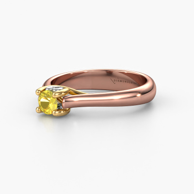 Der oben gezeigte Verlobungsring wird Nisa genannt. Wir nennen das einen Solitär-Ring, denn er hat einen einzelnen Edelstein. Es ist ein 14 Karat Roségold ring, mit 4.2 mm rund Gelb Saphir. Das Besondere an unserem Konfigurator ist dass Sie selbst einem Schmuckstück zusammenstellen können zu einem eigenen persönlichen Schmuckstück. Dieser Solitäre Verlobungsring ist gefertigt in der Edelmetall Kombination Roségold mit Gold, aber Sie können also auch wählen aus anderen Farben. Jedes Schmuckstück wird hergestellt von einem Team leidenschaftlicher Goldschmiede und Schmuckdesigner. Das wird Ihr Kronjuwel unbedingt zu einem Blickfang machen. Der Solitär-Verlobungsring ist eine Sonderform des Verlobungsring. Seine offenen Krappen ermöglichen, dass Licht aus mehr Winkeln auf den Edelstein trifft. Dieser einzigartige Verlobungsring ist durch die hohe Positionierung des Edelsteins ein atemberaubender Blickfang. Wir schmücken diesen Solitär-Ring sorgfältig von Hand, damit Sie Ihren Anfrage mit einem einzigartigen Ring würdigen können. Die Liebe Ihres Lebens verdient nur das Beste. Haben Sie ein bestimmtes Budget? Sie können uns gerne kontaktieren, damit wir Ihre Optionen besprechen können. Wir bieten unsere Verlobungsringe zum garantiert besten Preis, denn wir fertigen sie auf Bestellung. Solche Preise finden Sie nirgendwo anders!Unsere Designer und Goldschmiede arbeiten jeden Tag zusammen und versuchen, neue Schmuckstücke zu kreieren. Vielleicht haben Sie irgendwo einen schönen, einzigartige Verlobungsring gefunden, nach dem Ihr einzigartiger Ring gestaltet werden kann. Setzen Sie sich mit uns in Verbindung. Wir machen Ihnen ein Angebot, basierend auf einem fairen Preis/Leistungsverhältnis, das Sie begeistern wird.Um es einfacher zu machen, bieten wir eine kostenlose 30-tägige Rücksendung.