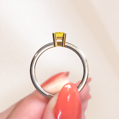 Der oben gezeigte Verlobungsring wird Denita 1 EME genannt. Wir nennen das einen Solitär-Ring, denn er hat einen einzelnen Edelstein. Es ist ein 14 Karat Weißgold ring, mit 6x4 mm smaragd schliff Gelb Saphir. Das Besondere an unserem Konfigurator ist dass Sie selbst einem Schmuckstück zusammenstellen können zu einem eigenen persönlichen Schmuckstück. Dieser Solitäre Verlobungsring ist gefertigt in der Edelmetall Kombination Weißgold mit Gold, aber Sie können also auch wählen aus anderen Farben. Jedes Schmuckstück wird hergestellt von einem Team leidenschaftlicher Goldschmiede und Schmuckdesigner. Das wird Ihr Kronjuwel unbedingt zu einem Blickfang machen. Der Solitär-Verlobungsring ist eine Sonderform des Verlobungsring. Seine offenen Krappen ermöglichen, dass Licht aus mehr Winkeln auf den Edelstein trifft. Dieser moderne Verlobungsring ist durch die hohe Positionierung des Edelsteins ein atemberaubender Blickfang. Wir schmücken diesen Solitär-Ring sorgfältig von Hand, damit Sie Ihren Anfrage mit einem einzigartigen Ring würdigen können. Die Liebe Ihres Lebens verdient nur das Beste. Durch die Kombination modernster Technik mit uralter Handwerkskunst können wir alle Verlobungsringe in unserem eigenen Studio anfertigen. Jedes Schmuckstück wird auf Anfrage gefertigt. Das ist vorteilhaft, weil wir Ihnen dadurch einen Preis anbieten können, den Sie nirgendwo anders finden.Unser Team fügt unserer Online-Kollektion täglich neue Designs hinzu. Unsere Designer und Goldschmiede arbeiten zusammen, um das beste Design zu kreieren. Wir bemühen uns, eine vielfältige Kollektion von Schmuckstücken anzubieten. Vielleicht haben Sie ein bestimmtes Design im Sinn. Eines, dass Sie irgendwo gesehen haben. Gerne geben wir Ihnen eine kostenlose Beratung. Wir machen Ihnen ein Angebot, basierend auf einem fairen Preis/Leistungsverhältnis, das Sie verblüffen wird.Um es einfacher zu machen, bieten wir eine kostenlose 30-tägige Rücksendung.