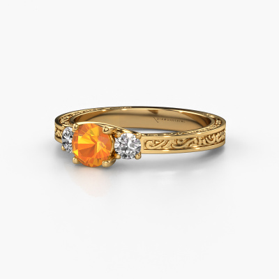 Dieser Verlobungsring aus 14 Karat Gold heißt Betty 1 und hat einen Citrin Edelstein. Ein außergewöhnlicher, Gold Vintage Ring. Einer, der die Liebe Ihres Lebens mit Sicherheit wie ein Citrin erstrahlen lässt! Das hoffen wir zu erreichen. Dieser Keltische Verlobungsring ist mit exquisiten Citrin besetzt. Welchen Edelstein Sie aus unserer Auswahl haben möchten, liegt ganz bei Ihnen. Der Edelstein wird mit großer Sorgfalt ausgewählt. Denn wir glauben, dass Ihr Verlobungsring nur mit dem schönsten Edelstein gekrönt sein darf. Sehen Sie das auch so? Unser erfahrener Juwelier entwirft Ihren Ring in unserem eigenen Studio, wo der Citrin mit großer Präzision eingefasst wird. Der Ring wird dann bearbeitet und poliert, bis er perfekt ist. Nichts als das Beste für die Liebe Ihres Lebens! Jedes Schmuckstück ist um Ihrem Finger Glanz zu verleihen. Jeder Ring wird von unseren Goldschmieden liebevoll von Hand gefertigt.Haben Sie ein bestimmtes Budget? Sie können uns gerne kontaktieren, damit wir Ihre Optionen besprechen können. Wir bieten unsere Verlobungsringe zum garantiert besten Preis, denn wir fertigen sie auf Bestellung. Solche Preise finden Sie nirgendwo anders!Unser Team fügt unserer Online-Kollektion täglich neue Designs hinzu. Unsere Designer und Goldschmiede arbeiten zusammen, um das beste Design zu kreieren. Wir bemühen uns, eine vielfältige Kollektion von Schmuckstücken anzubieten. Vielleicht haben Sie ein bestimmtes Design im Sinn. Eines, dass Sie irgendwo gesehen haben. Gerne geben wir Ihnen eine kostenlose Beratung. Wir machen Ihnen ein Angebot, basierend auf einem fairen Preis/Leistungsverhältnis, das Sie verblüffen wird.Um es einfacher zu machen, bieten wir eine kostenlose 30-tägige Rücksendung.