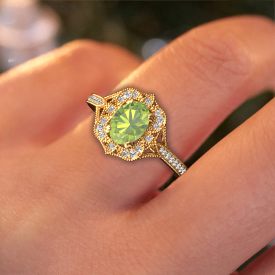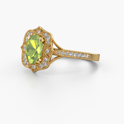 Dieser Verlobungsring aus 14 Karat Gold heißt Loni. Dieser filigrane Gold Verlobungsring mit 7,5x5,5 mm Peridot ist ein wahres Kunstwerk! Ein wunderschön geschmücktes Design aus komplizierten Drähten. Mit Hingabe, Geduld und äußerster Präzision werden unsere erfahrenen Juweliere einen Ring nur für Sie entwerfen. Die Verzierungen mit kleinen Drähten werden von Hand in Perfektion gefertigt. Das ist ein langwieriger Prozess, der Schweißen, Werkzeug und Polieren umfasst, bis der erfahrene Juwelier mit dem Ergebnis zufrieden ist: Ein perfekter, auffälliger Ring, der ihn mit Freude zum Strahlen bringt. Deshalb ist der Vintage, filigrane Verlobungsring ein außergewöhnliches Geschenk, um die Liebe Ihres Lebens zu verwöhnen. Ein handgemachter, einzigartiger und personalisierter Ring, den man jemandem in diesem besonderen Moment geben kann, wenn man die eine Frage stellt. Ist das nicht wunderbar? Jedes Schmuckstück wird hergestellt mit Leidenschaft und Liebe, von einem unserer Meister-Goldschmiede.Da wir unsere eigenen Ringe entwerfen und liefern, können wir Ihnen einen Verlobungsring zu einem Preis anbieten, den Sie nirgendwo anders finden. Ein Ring wird auf Bestellung angefertigt, wodurch kein überschüssiges Material anfällt. So können wir Ihnen ein gutes Angebot zum besten Preis machen. Wir verstehen, dass es sich riskant anfühlt, Ihren Verlobungsring online zu kaufen. Jedoch helfen wir Ihnen gerne beim Designprozess unter Berücksichtigung Ihres Budgets.Unser Team fügt unserer Online-Kollektion täglich neue Designs hinzu. Unsere Designer und Goldschmiede arbeiten zusammen, um das beste Design zu kreieren. Wir bemühen uns, eine vielfältige Kollektion von Schmuckstücken anzubieten. Vielleicht haben Sie ein bestimmtes Design im Sinn. Eines, dass Sie irgendwo gesehen haben. Gerne geben wir Ihnen eine kostenlose Beratung. Wir machen Ihnen ein Angebot, basierend auf einem fairen Preis/Leistungsverhältnis, das Sie verblüffen wird.Um es einfacher zu machen, bieten wir eine kostenlose 30-tägige Rücksendung.
