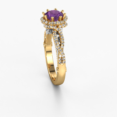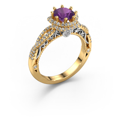 Dieser Verlobungsring aus 14 Karat Gold heißt Lysanne. Dieser filigrane Gold Verlobungsring mit 6.5 mm Amethyst ist ein wahres Kunstwerk! Ein wunderschön geschmücktes Design aus komplizierten Drähten. Mit Hingabe, Geduld und äußerster Präzision werden unsere erfahrenen Juweliere einen Ring nur für Sie entwerfen. Die Verzierungen mit kleinen Drähten werden von Hand in Perfektion gefertigt. Das ist ein langwieriger Prozess, der Schweißen, Werkzeug und Polieren umfasst, bis der erfahrene Juwelier mit dem Ergebnis zufrieden ist: Ein perfekter, auffälliger Ring, der ihn mit Freude zum Strahlen bringt. Deshalb ist der Vintage, filigrane Verlobungsring ein außergewöhnliches Geschenk, um die Liebe Ihres Lebens zu verwöhnen. Ein handgemachter, einzigartiger und personalisierter Ring, den man jemandem in diesem besonderen Moment geben kann, wenn man die eine Frage stellt. Ist das nicht wunderbar? Jedes Schmuckstück wird hergestellt von einem Team leidenschaftlicher Goldschmiede und Schmuckdesigner. Das wird Ihr Kronjuwel unbedingt zu einem Blickfang machen.Nachdem Sie Ihre Bestellung aufgegeben haben, beginnen unsere Goldschmiede mit dem kreativen Prozess der Herstellung Ihres Lysanne Verlobungsring. Wir haben keine Lager. Das ist vorteilhaft, da diese Kosten nicht an Sie weitergegeben werden. Daher sind wir in der Lage, Schmuck zu außergewöhnlich niedrigen Preisen anzubieten.Haben Sie irgendwo einen bestimmten Verlobungsring gefunden, den Sie Ihrem Liebsten schenken möchten? Sie können uns gerne sagen, was Sie wollen und wir werden Ihr Design in einen Einzigartigen Vintage Verlobungsring verwandeln. Sie können die Entwicklungen Ihres Ringdesigns verfolgen, da wir 3D-Zeichnungen verwenden. Das gibt Ihnen eine realistische Vorschau, wie Ihr Design aussehen wird. Sie können auch einen Dummy vorbestellen. Ein Dummy ist ein Kunststoffring, der nach Ihrem Ringdesign gestaltet werden kann. Sie können ihn anprobieren und prüfen, ob seine Breite und Größe für Sie geeignet sind. Wir senden Ihnen gerne ein unverbindliches Angebot zu einem fairen Preis/Leistungsverhältnis. Sie werden in Anbetracht der Qualität des Rings und der Edelsteine überrascht sein.Um es einfacher zu machen, bieten wir eine kostenlose 30-tägige Rücksendung.