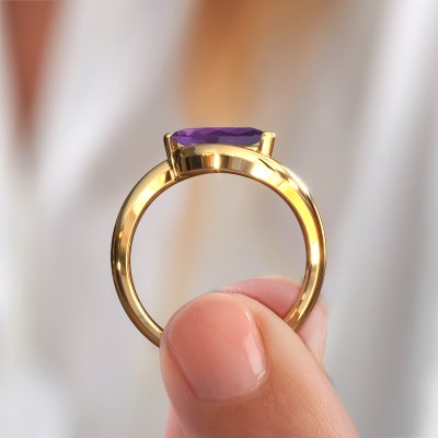 Dieser Verlobungsring aus 14 Karat Gold mit 11x5.5 mm Amethyst heißt Aida MRQ. Liebt deine Freundin exklusiven Schmuck? Oder möchten Sie ihr zeigen, dass sie den besten Schmuck verdient? Dieser Gold Ring ist pure Handwerkskunst - Liebe und