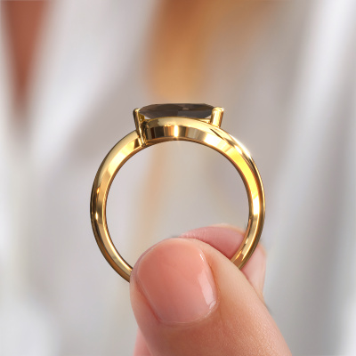 Dieser Verlobungsring aus 14 Karat Gold mit 11x5.5 mm Rauchquarz heißt Aida MRQ. Liebt deine Freundin exklusiven Schmuck? Oder möchten Sie ihr zeigen, dass sie den besten Schmuck verdient? Dieser Gold Ring ist pure Handwerkskunst - Liebe und