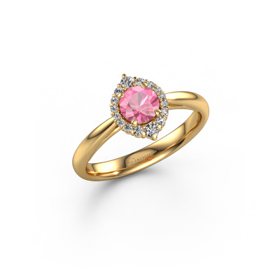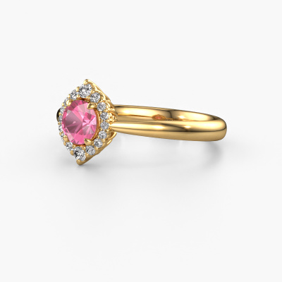 Der oben gezeigte Ring wird Tora genannt. Ein Cluster Ring mit einem zentralen Edelstein, umgeben von kleineren Steinen, wir nennen das einen Cluster Ring. Diese Version in 14 Karat Gold hat einen 5 mm rund Pink Saphir als Mittelstein, umschlossen von kleineren Lab grown Diamant. Der klassische, Gold Cluster Verlobungsring zeichnet sich durch seine Form aus. Zusammen bilden die kleineren und größeren Pink Saphir eine Blume und scheinen zu einem großen, funkelnden Edelstein zu verschmelzen. Dieser klassische Verlobungsring wird auch als Blumen- oder Rosettenring bezeichnet. Unsere erfahrenen Juweliere stellen sicher, dass die kleineren Lab grown Diamant identisch gesetzt sind, so dass es an dem Pink Saphir keine Lichtstörungen gibt, sondern sie stattdessen eine Einheit bilden. Mit perfekter Präzision und geschickter Hand wird jeder Pink Saphir in den Ring gesetzt. Während der Herstellung wird alles ständig überwacht, um sicherzustellen, dass das Licht einwandfrei reflektiert wird. Das alles führt zu einem einzigartigen Verlobungsring mit einem strahlenden Pink Saphir in seiner Mitte. Ein schönes, bedeutungsvolles Geschenk, um es der Liebe Ihres Lebens zu schenken. Durch die Kombination modernster Technik mit uralter Handwerkskunst können wir alle Verlobungsringe in unserem eigenen Studio anfertigen. Jedes Schmuckstück wird auf Anfrage gefertigt. Das ist vorteilhaft, weil wir Ihnen dadurch einen Preis anbieten können, den Sie nirgendwo anders finden.Haben Sie irgendwo einen bestimmten Verlobungsring gefunden, den Sie Ihrem Liebsten schenken möchten? Sie können uns gerne sagen, was Sie wollen und wir werden Ihr Design in einen Einzigartigen klassische Verlobungsring verwandeln. Sie können die Entwicklungen Ihres Ringdesigns verfolgen, da wir 3D-Zeichnungen verwenden. Das gibt Ihnen eine realistische Vorschau, wie Ihr Design aussehen wird. Sie können auch einen Dummy vorbestellen. Ein Dummy ist ein Kunststoffring, der nach Ihrem Ringdesign gestaltet werden kann. Sie können ihn anprobieren und prüfen, ob seine Breite und Größe für Sie geeignet sind. Wir senden Ihnen gerne ein unverbindliches Angebot zu einem fairen Preis/Leistungsverhältnis. Sie werden in Anbetracht der Qualität des Rings und der Edelsteine überrascht sein.Um es einfacher zu machen, bieten wir eine kostenlose 30-tägige Rücksendung.
