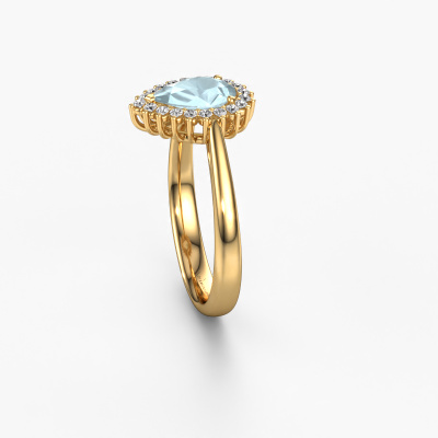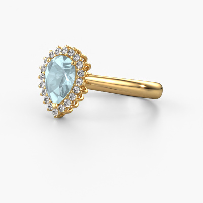 Der oben gezeigte Ring wird Tilly per 1 genannt. Ein Cluster Ring mit einem zentralen Edelstein, umgeben von kleineren Steinen, wir nennen das einen Cluster Ring. Diese Version in 14 Karat Gold hat einen 8x6 mm tropfen Aquamarin als Mittelstein, umschlossen von kleineren Diamanten. Der exklusive, Gold Cluster Verlobungsring zeichnet sich durch seine Form aus. Zusammen bilden die kleineren und größeren Aquamarin eine Blume und scheinen zu einem großen, funkelnden Edelstein zu verschmelzen. Dieser exklusive Verlobungsring wird auch als Blumen- oder Rosettenring bezeichnet. Unsere erfahrenen Juweliere stellen sicher, dass die kleineren Diamanten identisch gesetzt sind, so dass es an dem Aquamarin keine Lichtstörungen gibt, sondern sie stattdessen eine Einheit bilden. Mit perfekter Präzision und geschickter Hand wird jeder Aquamarin in den Ring gesetzt. Während der Herstellung wird alles ständig überwacht, um sicherzustellen, dass das Licht einwandfrei reflektiert wird. Das alles führt zu einem einzigartigen Verlobungsring mit einem strahlenden Aquamarins in seiner Mitte. Ein schönes, bedeutungsvolles Geschenk, um es der Liebe Ihres Lebens zu schenken. Nachdem Sie Ihre Bestellung aufgegeben haben, beginnen unsere Goldschmiede mit dem kreativen Prozess der Herstellung Ihres Tilly per 1 Verlobungsring. Wir haben keine Lager. Das ist vorteilhaft, da diese Kosten nicht an Sie weitergegeben werden. Daher sind wir in der Lage, Schmuck zu außergewöhnlich niedrigen Preisen anzubieten.Unser Team fügt unserer Online-Kollektion täglich neue Designs hinzu. Unsere Designer und Goldschmiede arbeiten zusammen, um das beste Design zu kreieren. Wir bemühen uns, eine vielfältige Kollektion von Schmuckstücken anzubieten. Vielleicht haben Sie ein bestimmtes Design im Sinn. Eines, dass Sie irgendwo gesehen haben. Gerne geben wir Ihnen eine kostenlose Beratung. Wir machen Ihnen ein Angebot, basierend auf einem fairen Preis/Leistungsverhältnis, das Sie verblüffen wird.Um es einfacher zu machen, bieten wir eine kostenlose 30-tägige Rücksendung.
