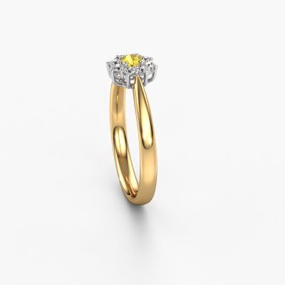 Der oben gezeigte Ring wird Carolyn 1 genannt. Ein Flower Ring mit einem zentralen Edelstein, umgeben von kleineren Steinen, wir nennen das einen Cluster Ring. Diese Version in 14 Karat Gold hat einen 3 mm rund Gelb Saphir als Mittelstein, umschlossen von kleineren Diamanten. Der traditionell, Gold Flower Verlobungsring zeichnet sich durch seine Form aus. Zusammen bilden die kleineren und größeren Gelb Saphir eine Blume und scheinen zu einem großen, funkelnden Edelstein zu verschmelzen. Dieser traditionell Verlobungsring wird auch als Blumen- oder Rosettenring bezeichnet. Unsere erfahrenen Juweliere stellen sicher, dass die kleineren Diamanten identisch gesetzt sind, so dass es an dem Gelb Saphir keine Lichtstörungen gibt, sondern sie stattdessen eine Einheit bilden. Mit perfekter Präzision und geschickter Hand wird jeder Gelb Saphir in den Ring gesetzt. Während der Herstellung wird alles ständig überwacht, um sicherzustellen, dass das Licht einwandfrei reflektiert wird. Das alles führt zu einem einzigartigen Verlobungsring mit einem strahlenden Gelb Saphir in seiner Mitte. Ein schönes, bedeutungsvolles Geschenk, um es der Liebe Ihres Lebens zu schenken. Mit unserer modernen Technik können wir Schmuckstücke von höchster Qualität mit größter Sorgfalt für Sie entwerfen und anpassen. Unsere Verlobungsringe sind immer um 30 Prozent günstiger als bei anderen Juwelieren. Wir fertigen Verlobungsringe auf Bestellung, also müssen wir keine großen Lager unterhalten. Wenn Sie ein bestimmtes Budget haben, beraten wir Sie gerne entsprechend.Haben Sie einen bestimmten Ring im Sinn? Eines, dass Sie irgendwo gesehen haben. Bitte zögern Sie nicht, uns zu sagen, was Sie wollen und wir werden Ihr Design in einen Einzigartigen Verlobungsring verwandeln. Sie können die Entwicklungen Ihres Ringdesigns verfolgen, da wir 3D-Zeichnungen verwenden. Das gibt Ihnen eine realistische Vorschau Ihres Designs. Wir senden Ihnen gerne ein unverbindliches Angebot zu einem fairen Preis/Leistungsverhältnis. Es wird Sie erstaunen.Um es einfacher zu machen, bieten wir eine kostenlose 30-tägige Rücksendung.