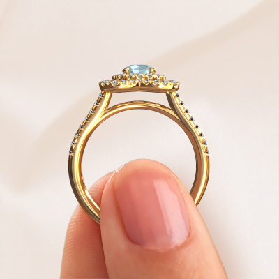 Dieser Verlobungsring aus 14 Karat Gold heißt Cleopatra und hat einen Aquamarin Edelstein. Ein außergewöhnlicher, Gold Vintage Ring. Einer, der die Liebe Ihres Lebens mit Sicherheit wie ein Aquamarin erstrahlen lässt! Das hoffen wir zu erreichen. Dieser Vintage Verlobungsring ist mit exquisiten Aquamarins besetzt. Welchen Edelstein Sie aus unserer Auswahl haben möchten, liegt ganz bei Ihnen. Der Edelstein wird mit großer Sorgfalt ausgewählt. Denn wir glauben, dass Ihr Verlobungsring nur mit dem schönsten Edelstein gekrönt sein darf. Sehen Sie das auch so? Unser erfahrener Juwelier entwirft Ihren Ring in unserem eigenen Studio, wo der Aquamarin mit großer Präzision eingefasst wird. Der Ring wird dann bearbeitet und poliert, bis er perfekt ist. Nichts als das Beste für die Liebe Ihres Lebens! Jedes Schmuckstück wird nur für Sie persönlich hergestellt, mit Liebe zum Detail und Design.Nach Erhalt Ihrer Bestellung beginnen unsere Goldschmiede mit Leidenschaft den kreativen Prozess und fertigen Ihren Verlobungsring in unserem eigenen Studio. Da wir keine großen Lager haben, werden diese Kosten nicht an Sie weitergegeben. Unsere Preisgestaltung ist der Beweis dafür! Wir bieten Schmuck zum niedrigsten Preis, garantiert.Haben Sie irgendwo einen bestimmten Verlobungsring gefunden, den Sie Ihrem Liebsten schenken möchten? Sie können uns gerne sagen, was Sie wollen und wir werden Ihr Design in einen Einzigartigen Vintage Verlobungsring verwandeln. Sie können die Entwicklungen Ihres Ringdesigns verfolgen, da wir 3D-Zeichnungen verwenden. Das gibt Ihnen eine realistische Vorschau, wie Ihr Design aussehen wird. Sie können auch einen Dummy vorbestellen. Ein Dummy ist ein Kunststoffring, der nach Ihrem Ringdesign gestaltet werden kann. Sie können ihn anprobieren und prüfen, ob seine Breite und Größe für Sie geeignet sind. Wir senden Ihnen gerne ein unverbindliches Angebot zu einem fairen Preis/Leistungsverhältnis. Sie werden in Anbetracht der Qualität des Rings und der Edelsteine überrascht sein.Um es einfacher zu machen, bieten wir eine kostenlose 30-tägige Rücksendung.