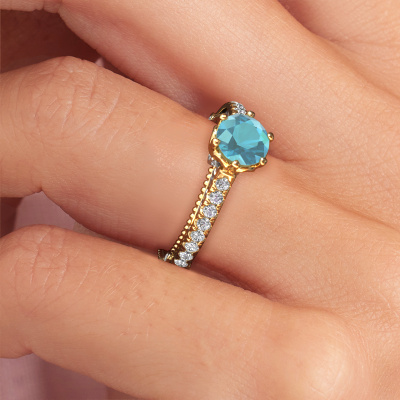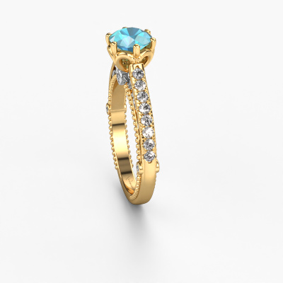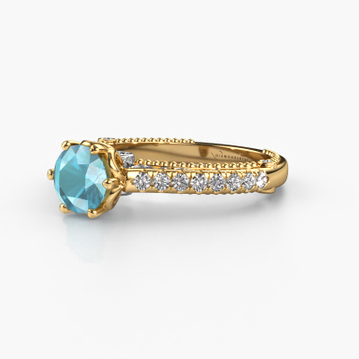 Dieser Verlobungsring aus 14 Karat Gold heißt Venita und hat einen Blau Topas Edelstein. Ein außergewöhnlicher, Gold Vintage Ring. Einer, der die Liebe Ihres Lebens mit Sicherheit wie ein Blau Topas erstrahlen lässt! Das hoffen wir zu erreichen. Dieser Vintage Verlobungsring ist mit exquisiten Blaue Topas besetzt. Welchen Edelstein Sie aus unserer Auswahl haben möchten, liegt ganz bei Ihnen. Der Edelstein wird mit großer Sorgfalt ausgewählt. Denn wir glauben, dass Ihr Verlobungsring nur mit dem schönsten Edelstein gekrönt sein darf. Sehen Sie das auch so? Unser erfahrener Juwelier entwirft Ihren Ring in unserem eigenen Studio, wo der Blau Topas mit großer Präzision eingefasst wird. Der Ring wird dann bearbeitet und poliert, bis er perfekt ist. Nichts als das Beste für die Liebe Ihres Lebens! Jedes Schmuckstück wird von unseren Meister-Goldschmieden in unserem eigenen Studio für Sie gefertigt.Nach Erhalt Ihrer Bestellung beginnen unsere Goldschmiede mit Leidenschaft den kreativen Prozess und fertigen Ihren Verlobungsring in unserem eigenen Studio. Da wir keine großen Lager haben, werden diese Kosten nicht an Sie weitergegeben. Unsere Preisgestaltung ist der Beweis dafür! Wir bieten Schmuck zum niedrigsten Preis, garantiert.Unser Team fügt unserer Online-Kollektion täglich neue Designs hinzu. Unsere Designer und Goldschmiede arbeiten zusammen, um das beste Design zu kreieren. Wir bemühen uns, eine vielfältige Kollektion von Schmuckstücken anzubieten. Vielleicht haben Sie ein bestimmtes Design im Sinn. Eines, dass Sie irgendwo gesehen haben. Gerne geben wir Ihnen eine kostenlose Beratung. Wir machen Ihnen ein Angebot, basierend auf einem fairen Preis/Leistungsverhältnis, das Sie verblüffen wird.Um es einfacher zu machen, bieten wir eine kostenlose 30-tägige Rücksendung.