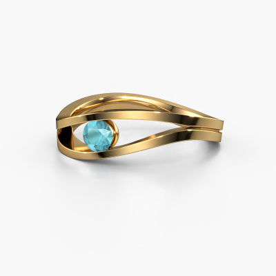 Dieser Verlobungsring aus 14 Karat Gold mit 3.7 mm Blau Topas heißt Sigrid 1. Dieser design, Gold Verlobungsring ist ein wahres Meisterstück! Unser erfahrener Juwelier verwendet spezielle Techniken bei der Herstellung dieses Rings mit Spann Fassung, um sicherzustellen, dass der Blau Topas dieses Gold Rings richtig fixiert ist. Der Effekt ist, dass der Lichteinfall wunderschön auf den Edelstein reflektiert wird. Das verleiht dem Ring seinen maximalen Glanz und seine glamouröse Erscheinung. Das Endprodukt ist ein einzigartiger Ring mit einer trendigen Erscheinung, der von unserem erfahrenen Juwelier leidenschaftlich in Handarbeit gefertigt wird. Ein einzigartiger Ring, entworfen für die Liebe Ihres Lebens! Jedes Schmuckstück lässt Ihren Finger erstrahlen. Ihr Ring ist mit Liebe von unseren Goldschmieden handgefertigt.Mit unserer modernen Technik können wir Schmuckstücke von höchster Qualität mit größter Sorgfalt für Sie entwerfen und anpassen. Unsere Verlobungsringe sind immer um 30 Prozent günstiger als bei anderen Juwelieren. Wir fertigen Verlobungsringe auf Bestellung, also müssen wir keine großen Lager unterhalten. Wenn Sie ein bestimmtes Budget haben, beraten wir Sie gerne entsprechend.Verschiedene Arten von neuen Ringen werden täglich von unserem Team angefertigt. Vielleicht haben Sie irgendwo einen Solitär Verlobungsring gefunden. Einen, den Sie Ihrem Liebsten schenken möchten. Bitte zögern Sie nicht, unseren Schmuckdesignern Ihre Gedanken und Ihr Design zu zeigen. Wir würden gerne Ihr Design in einen design Verlobungsring verwandeln. Sie können die Entwicklungen Ihres Ringdesigns verfolgen, da wir sehr detaillierte 3D-Zeichnungen verwenden. Darüber hinaus können Sie einen Dummy des Designs bestellen. Ein Dummy ist ein Kunststoffring, der nach Ihrem Ringdesign gestaltet werden kann. Sie können ihn anprobieren und prüfen, ob der Verlobungsring Ihren Vorstellungen entspricht. Wir senden Ihnen gerne ein unverbindliches Angebot zu einem fairen Preis/Leistungsverhältnis. Das Angebot wird Sie angesichts der Qualität des Rings und der Edelsteine verblüffen.Um es einfacher zu machen, bieten wir eine kostenlose 30-tägige Rücksendung.