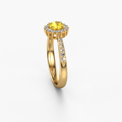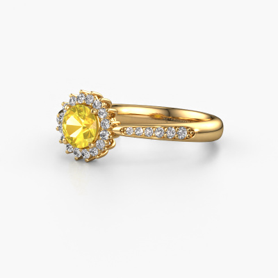 Der oben gezeigte Ring wird Tilly RND 2 genannt. Ein Cluster Ring mit einem zentralen Edelstein, umgeben von kleineren Steinen, wir nennen das einen Cluster Ring. Diese Version in 14 Karat Gold hat einen 5 mm rund Gelb Saphir als Mittelstein, umschlossen von kleineren Diamanten. Wenn Sie einen Gold Cluster Verlobungsring sehen, werden Sie vielleicht den Eindruck bekommen, dass seine kleineren Steine mit dem größeren Gelb Saphir aufeinanderprallen. Deshalb ist er wie eine Blume geformt. Deshalb ist dieser Verlobungsring auch als Blumen- oder Rosetten Fassung bekannt. Es ist sehr wichtig, dass die kleineren Diamanten identisch positioniert sind, so dass es kein Spiel im Licht, sondern eine perfekte Einheit ergibt. Unsere erfahrenen Juweliere erledigen diese Arbeit. Jeder einzelne Stein wird sorgfältig von Hand gesetzt. Während der Herstellung wird der Lichteinfall ständig überwacht. Am Ende bekommen Sie den perfekten Verlobungsring mit einem strahlenden Gelb Saphir Edelstein Herzstück. Sie können sich die Wirkung eines solchen Ringes vorstellen, wenn Sie ihn an ihrem besonderen Tag für die Liebe Ihres Lebens zum Leuchten bringen. Nachdem Sie Ihre Bestellung aufgegeben haben, beginnen unsere Goldschmiede mit dem kreativen Prozess der Herstellung Ihres Tilly RND 2 Verlobungsring. Wir haben keine Lager. Das ist vorteilhaft, da diese Kosten nicht an Sie weitergegeben werden. Daher sind wir in der Lage, Schmuck zu außergewöhnlich niedrigen Preisen anzubieten.Unser Team fügt unserer Online-Kollektion täglich neue Designs hinzu. Unsere Designer und Goldschmiede arbeiten zusammen, um das beste Design zu kreieren. Wir bemühen uns, eine vielfältige Kollektion von Schmuckstücken anzubieten. Vielleicht haben Sie ein bestimmtes Design im Sinn. Eines, dass Sie irgendwo gesehen haben. Gerne geben wir Ihnen eine kostenlose Beratung. Wir machen Ihnen ein Angebot, basierend auf einem fairen Preis/Leistungsverhältnis, das Sie verblüffen wird.Um es einfacher zu machen, bieten wir eine kostenlose 30-tägige Rücksendung.