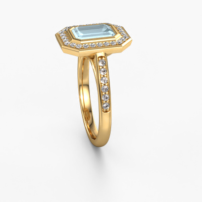 Dieser Verlobungsring aus 14 Karat Gold mit 8x6 mm Aquamarin heißt Noud 2 EME. Liebt deine Freundin exklusiven Schmuck? Oder möchten Sie ihr zeigen, dass sie den besten Schmuck verdient? Dieser Gold Ring ist pure Handwerkskunst - Liebe und Leidenschaft kombiniert mit den neuesten Techniken, die in perfekter Harmonie zusammentreffen. Es erfordert ein scharfes Auge, Geduld und eine geschickte Hand, um diesen Ring in Perfektion zu formen. Genau der richtige Job für unsere erfahrenen Juweliere! Die Aquamarins-Fassung verleiht diesem Gold Pavé Ring eine extra glänzende Erscheinung. Passen Sie den Stil des Rings nach Ihren Wünschen und mit einer großen Auswahl an Edelmetallen und Edelsteinen an, die Sie selbst auswählen können. So kreieren Sie einen einzigartigen Ring für die exklusivste Frau Ihres Lebens! Jedes Schmuckstück ist um Ihrem Finger Glanz zu verleihen. Jeder Ring wird von unseren Goldschmieden liebevoll von Hand gefertigt.Nachdem Sie Ihre Bestellung aufgegeben haben, beginnen unsere Goldschmiede mit dem kreativen Prozess der Herstellung Ihres Noud 2 EME Verlobungsring. Wir haben keine Lager. Das ist vorteilhaft, da diese Kosten nicht an Sie weitergegeben werden. Daher sind wir in der Lage, Schmuck zu außergewöhnlich niedrigen Preisen anzubieten.Haben Sie irgendwo einen bestimmten Verlobungsring gefunden, den Sie Ihrem Liebsten schenken möchten? Sie können uns gerne sagen, was Sie wollen und wir werden Ihr Design in einen Einzigartigen exklusive Verlobungsring verwandeln. Sie können die Entwicklungen Ihres Ringdesigns verfolgen, da wir 3D-Zeichnungen verwenden. Das gibt Ihnen eine realistische Vorschau, wie Ihr Design aussehen wird. Sie können auch einen Dummy vorbestellen. Ein Dummy ist ein Kunststoffring, der nach Ihrem Ringdesign gestaltet werden kann. Sie können ihn anprobieren und prüfen, ob seine Breite und Größe für Sie geeignet sind. Wir senden Ihnen gerne ein unverbindliches Angebot zu einem fairen Preis/Leistungsverhältnis. Sie werden in Anbetracht der Qualität des Rings und der Edelsteine überrascht sein.Um es einfacher zu machen, bieten wir eine kostenlose 30-tägige Rücksendung.