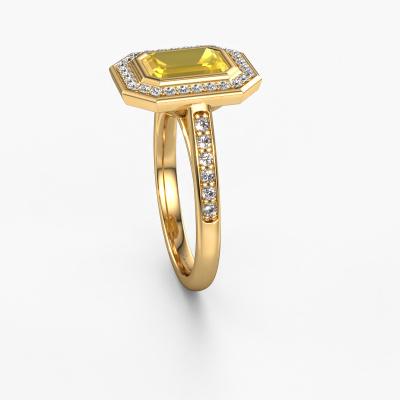 Dieser Verlobungsring aus 14 Karat Gold mit 8x6 mm Gelb Saphir heißt Noud 2 EME. Liebt deine Freundin exklusiven Schmuck? Oder möchten Sie ihr zeigen, dass sie den besten Schmuck verdient? Dieser Gold Ring ist pure Handwerkskunst - Liebe und Leidenschaft kombiniert mit den neuesten Techniken, die in perfekter Harmonie zusammentreffen. Es erfordert ein scharfes Auge, Geduld und eine geschickte Hand, um diesen Ring in Perfektion zu formen. Genau der richtige Job für unsere erfahrenen Juweliere! Die Gelb Saphir-Fassung verleiht diesem Gold Pavé Ring eine extra glänzende Erscheinung. Passen Sie den Stil des Rings nach Ihren Wünschen und mit einer großen Auswahl an Edelmetallen und Edelsteinen an, die Sie selbst auswählen können. So kreieren Sie einen einzigartigen Ring für die exklusivste Frau Ihres Lebens! Jedes Schmuckstück ist um Ihrem Finger Glanz zu verleihen. Jeder Ring wird von unseren Goldschmieden liebevoll von Hand gefertigt.Nachdem Sie Ihre Bestellung aufgegeben haben, beginnen unsere Goldschmiede mit dem kreativen Prozess der Herstellung Ihres Noud 2 EME Verlobungsring. Wir haben keine Lager. Das ist vorteilhaft, da diese Kosten nicht an Sie weitergegeben werden. Daher sind wir in der Lage, Schmuck zu außergewöhnlich niedrigen Preisen anzubieten.Haben Sie irgendwo einen bestimmten Verlobungsring gefunden, den Sie Ihrem Liebsten schenken möchten? Sie können uns gerne sagen, was Sie wollen und wir werden Ihr Design in einen Einzigartigen exklusive Verlobungsring verwandeln. Sie können die Entwicklungen Ihres Ringdesigns verfolgen, da wir 3D-Zeichnungen verwenden. Das gibt Ihnen eine realistische Vorschau, wie Ihr Design aussehen wird. Sie können auch einen Dummy vorbestellen. Ein Dummy ist ein Kunststoffring, der nach Ihrem Ringdesign gestaltet werden kann. Sie können ihn anprobieren und prüfen, ob seine Breite und Größe für Sie geeignet sind. Wir senden Ihnen gerne ein unverbindliches Angebot zu einem fairen Preis/Leistungsverhältnis. Sie werden in Anbetracht der Qualität des Rings und der Edelsteine überrascht sein.Um es einfacher zu machen, bieten wir eine kostenlose 30-tägige Rücksendung.